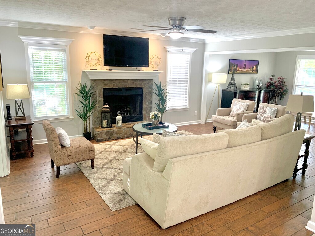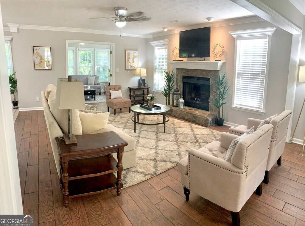 Beautifully FULLY FURNISHED 5 bedroom, 2.5 bath executive home fully stocked with most basic needs, all you need are your clothes and you're home! Grocery shopping is less than a five-minute drive away. Almost 3000 sq. ft. of comfortable living space. Kitchen hosts granite counter tops and walk in pantry! Upstairs laundry room and downstairs sunroom with private backyard views! Five minutes either way to award winning schools, located in the Starrs Mill school district on the southside of Peachtree City. 10 minutes to Senoia, downtown Peachtree City and only 10 miles to Trilith studios! Neighborhood swimming pool included. Utilities are all set up and renter will be charged as used per month. 6-12 months is $3750 plus utilities. Short term rental-anything from 3 to 5 months will be $4000 per month (plus utilities). $500 cleaning fee is non-refundable. One dog allowed unless written permission for more with a $300 deposit that is non-refundable as used for post flea/tick treatment and carpet cleaning deodorizer. MLS ID 10716616