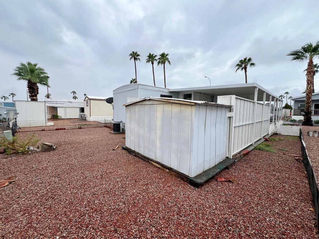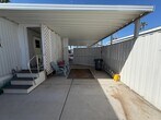 Discover comfortable and easy living in this lovely home located in the welcoming Broadway Estate 55+ Community. This well-cared-for property offers great curb appeal with a covered carport,a newly built deck,and a stylish French door entry that adds charm right from the start. Step inside to an inviting interior with durable wood laminate flooring throughout and an open-concept layout that flows seamlessly from the spacious living area to the well-equipped kitchen. You'll love the ample cabinet space,drawer storage,and pantryperfect for keeping everything organized. The bedroom is generously sized and includes a large closet and built-in drawers for extra convenience. The bathroom features a walk-in shower with safety grab bars,offering ease and peace of mind. Enjoy the fenced backyard ideal for pets,gardening,or just enjoying your own private outdoor space. There's also a large covered back patio and an enclosed laundry area with a stackable washer and dryer,along with additional storage space. All appliances and air conditioning are energy-efficient a valuable benefit for Arizona's warm climate. The Broadway Estate Community is peaceful and friendly,with just 122 homes and a variety of amenities to enjoy,including a clubhouse,pool and spa,pickleball courts,fitness center,billiards,laundry room,fire pit,and more. This home combines comfort,function,and a great lifestyle in a vibrant 55+ community,inquire on a lease to own option too,don't miss your chance to see it!