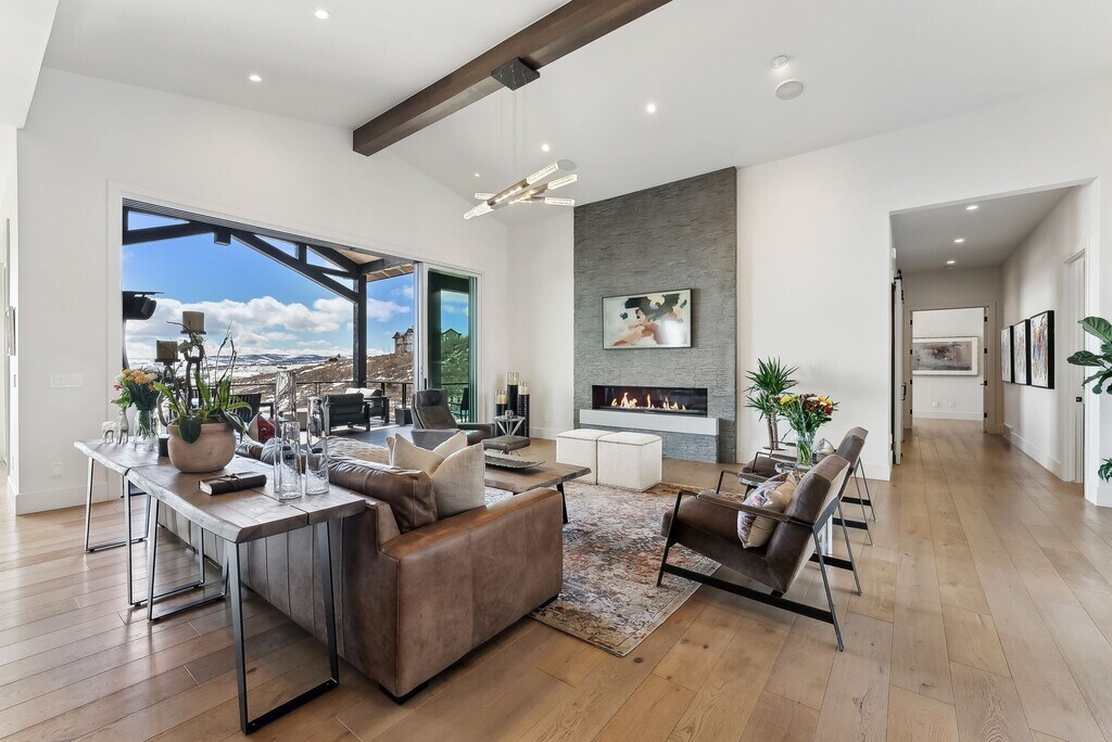 Located in the prestigious Tuhaye community, this beautifully designed 5-bedroom, 5.5-bathroom mountain modern home offers the perfect blend of luxury, comfort, and functionality—all on one level. With expansive long-range views and southern exposure, natural light fills the living spaces throughout the day. Thoughtfully crafted for both relaxation and entertaining, this home features a flat front yard, an oversized 3-car garage with 10’ doors, and a radiant heated driveway for effortless year-round access. On the main level, you’ll find a spacious primary suite with a private balcony, a dedicated home office, a guest ensuite bedroom, and a powder room. A laundry room is also conveniently located on this level. The open-concept living and dining area boasts breathtaking views and seamless indoor-outdoor flow, with glass accordion doorsleading to an expansive deck—perfect for entertaining. The lower level is designed for recreation and relaxation, featuring a pool room, a private gym with a rubber floor, mirrored wall, full dumbbell weight rack with bench, and a top-of-the-line NordicTrack treadmill. It also includes a music studio, an additional laundry room, and three spacious bedrooms. This level is well-appointed with three ¾ baths and one full bath, providing ample accommodations for family and guests. Reclaimed wood (Stickwood) accent walls add a warm mountain ambiance, creating an inviting retreat. Smart home automation includes Lutron wireless lighting switches, seamlessly integrated with Google or Alexa for effortless control. A whole-house Sonos music system extends to the outdoor patio and deck, ensuring a seamless audio experience inside and out. Outdoor living is elevated with a covered patio featuring a television, a fully landscaped yard, and multiple entertainment spaces, including a BBQ station on the upper deck and a movable pizza oven near the hot tub—perfect for après-ski evenings or summer gatherings by the fire pit. Nestled in Tuhaye, memeber residents enjoy access to world-class amenities, including the Talisker Club, championship golf, a private backcountry retreat, and close proximity to Park City’s renowned ski resorts. This exceptional home offers timeless design, modern convenience, and unparalleled mountain living—a true luxury retreat in one of Utah’s most sought-after communities. While all may enjoy the beautiful scenery and numerous trails available at Tuhaye, please note that other community amenities are available to Talisker Club members only. Non-member guests renting are not provided access to golf, pool, clubhouse and other Talisker Club amenities. However, guests will enjoy the home’s wonderful amenities, and there are excellent public golf courses and sports clubs with daily and monthly memberships available in close proximity of Tuhaye available.
