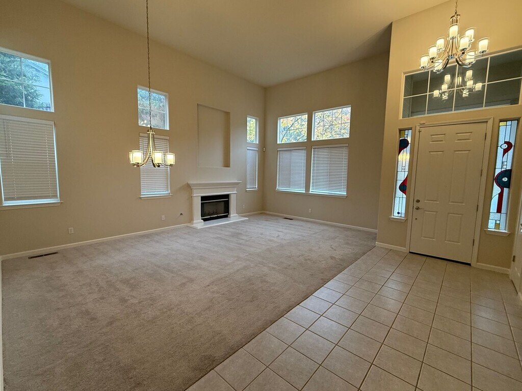 Discover this large two-story, 4-bedroom, 3.5-bathroom home located in the sought-after Fountain Grove neighborhood. Freshly painted throughout the interior, this beautiful home welcomes you with a bright and open living space featuring high ceilings, abundant natural light, a cozy gas fireplace, and a formal dining area perfect for entertaining. The expansive kitchen offers generous cabinet storage, polished granite countertops, a stainless-steel gas cooktop, double wall ovens, dishwasher, and refrigerator. A charming breakfast nook overlooks the family room, creating a warm and connected living space. The lower level features a spacious family room with a gas fireplace and sliding glass door that opens to the backyard. Just off the family room is a private bedroom with its own full bathroom and walk-in shower—ideal for guests, a home office, or multi-generational living. A half bathroom and laundry room with washer and dryer are also conveniently located on the main level. Upstairs, you’ll find two additional bedrooms that share a full bathroom with dual vanities and a tub/shower combination. The private primary suite is tucked away at the back of the home and boasts high ceilings, a large walk-in closet, and a beautifully updated bathroom with dual vanities, a separate soaking tub, walk-in shower, and water closet. Additional features include forced heating and air conditioning, an attached two-car garage, and a large backyard surrounded by lush greenery. Landscape service is included. Small dogs are negotiable. Sorry, no co-signers. One-year lease. This home offers the perfect blend of space, comfort, and style—schedule a tour today!