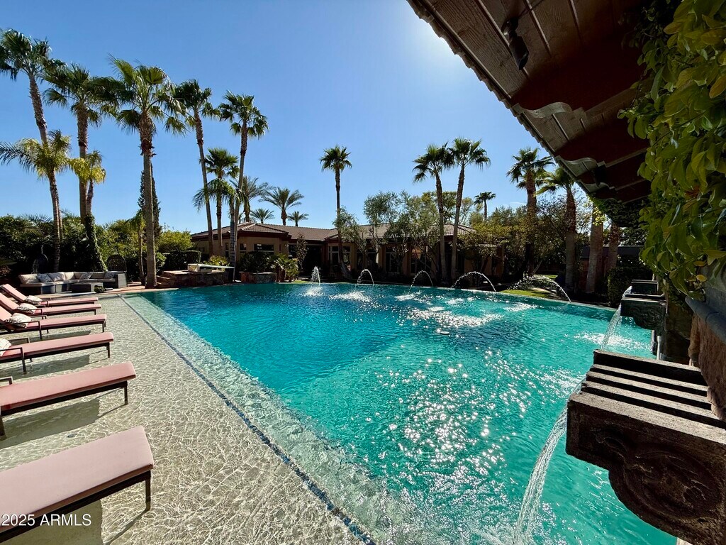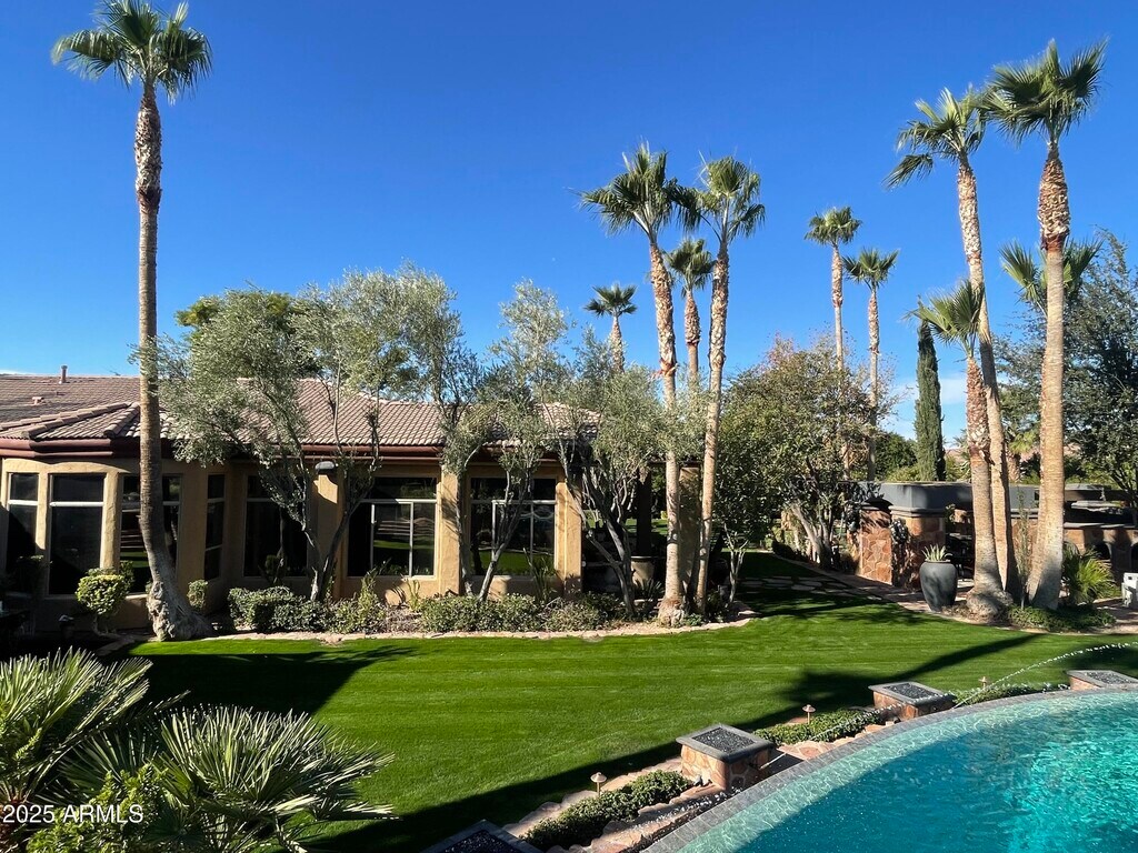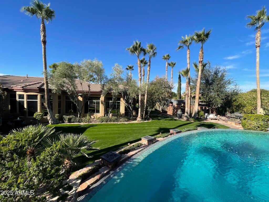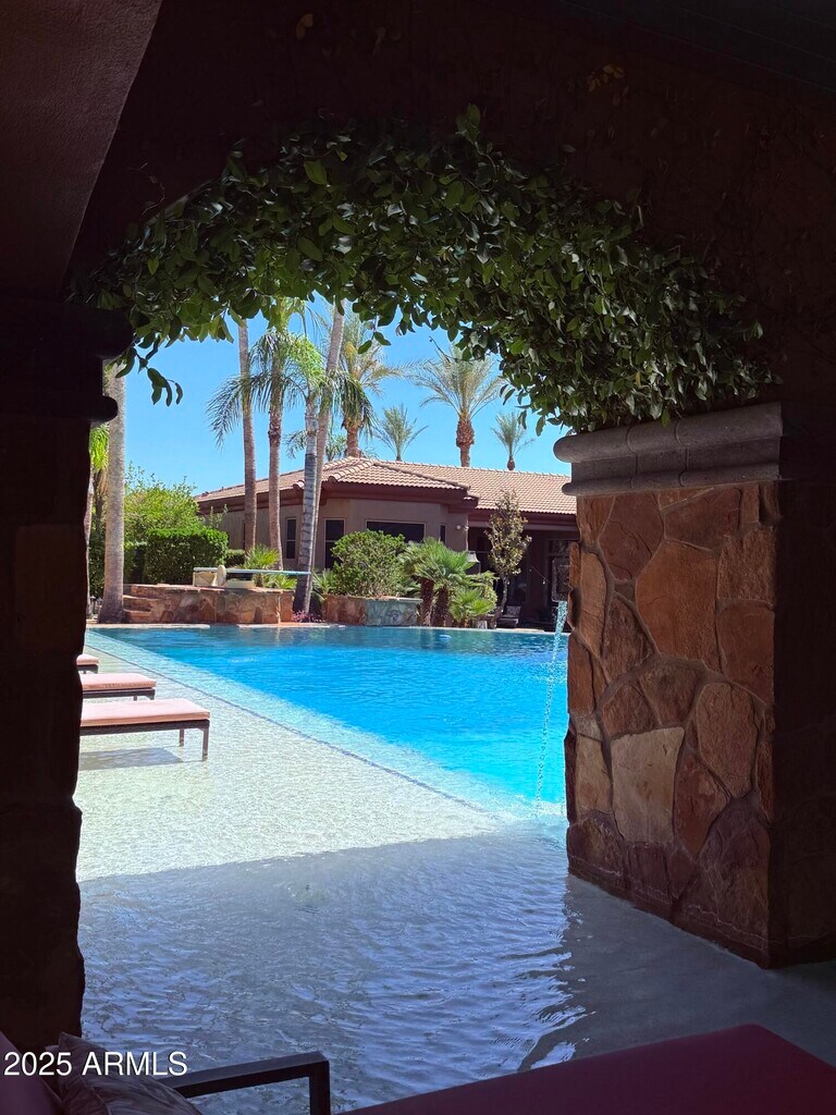 Epic Modern Tuscan estate on nearly an acre lot w/in the citrus-lined streets of gated,Arboleda. Near the 202/Red Mtn fwy,Falcon Field Airport,Gene Autry tennis park,& several golf courses,& a short drive to Spring Training,Scottsdale/Old Town/PV & SkyHarbor. Outdoor entertainer's delight- lush lawns,Italy-inspired courtyard fountains,a 126,000gal,14-foot deep neg edge diving pool w/Baja shelf,swim-up/ 8 person bar,lg Ramada; Cantera stone gas fireplace,fridge & TV/sound bar. Huge outdoor kitchen w/BBQ,pizza oven,TV. Single-story home w/basement,custom theater rm for 12/fully wired entertainment ctr connecting the entire house. Exquisitely upgraded kitchen w/island,granite,New Viking appliances,bread warmer,6 burner gas stove Split plan; prim suite retreat. Add'l space Living,Dining,Great room,sitting room,Bonus space/office,basement entertainment space,bar,and theater. Smart home controlled from phone and home. Indoor,outdoor,and garage speakers. Full Custom Garage "Man Cave" remodel just finished! Designer walls,TV,speakers,Lift,Ceiling,Lighting,epoxy floor,and sink. New paint- in,out,and fencing. New sun shades on entire home. Custom interior paint,wainscotting and coffered ceiling. New LVP flooring and flagstone sealing. Remodeled baths: counters,showers,toilets,wallpaper,fixtures and plumbing. Huge Koi pond and multiple fountains. Landscaping front/ back,pool cleaning,and Koi/ Koi pond care included in monthly rate. All furnishings- including Restoration Hardware and Bernhardt throughout available as a furnished rental option.. Rates,terms and furnishings can vary- Ask for details. Will consider a 6,12 or 24-month lease,or longer. Monthly rental incentives for prepaid rent. May consider fully furnished at a negotiated monthly rate. Possibly for Sale; as well as Lease/Purchase,Lease Option,or Seller Financing at 5.1%. Ask for details.