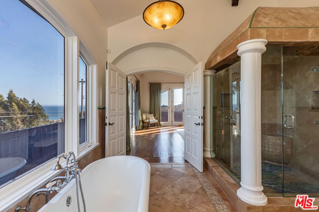 Perched above the coastline, this gated estate captures the essence of Malibu living - ocean views, complete privacy, and timeless character at every turn. A sunlit courtyard with fountain welcomes you into a home where French doors frame sweeping horizons from nearly every room. The living and dining spaces flow effortlessly outdoors, while the chef's kitchen with Viking appliances anchors the heart of the home. The primary suite is a private retreat with vaulted ceilings, dual balconies, and a soaking tub overlooking the coastline. Guest suites open to gardens, and amenities include a home gym, double laundry, and abundant natural light throughout. Outside, a sparkling pool and spa with ocean views are surrounded by manicured lawns, sunlit terraces, and mountain vistas. Just minutes from Malibu Country Mart, the Malibu Pier, Nobu, Soho House, Pepperdine, and Malibu's world-renowned beaches, this rare lease embodies the very best of coastal living. Available immediately, short or long term. MLS# 25588005