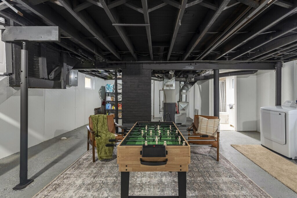 Get ready for a fun and relaxing stay at this beautifully renovated 3-bedroom, 2-bathroom home in Cleveland. Perfect for families or friends, this home combines modern updates with unique entertainment features to create an unforgettable experience. Inside, you’ll find bright and inviting spaces, including a fully updated kitchen and comfortable bedrooms. All bedrooms are upstairs and include a room with a full trundle bed with a twin underneath, a queen bedroom, and a king bedroom with a smart TV. One of the full bathrooms is up here featuring a tub/shower combination. Head down to the basement to enjoy a game of foosball or ping pong for hours of fun. The additional full bathroom is down here with a walk-in shower. This home is designed for comfort and entertainment, featuring a fully renovated interior with contemporary design and updates throughout. Relax in the cozy living room with your group or enjoy home-cooked meals in the updated kitchen. The porch offers a perfect spot to enjoy your morning coffee or evening nightcap. A maximum of 2 dogs are allowed for a flat fee of $125 per stay. Requests to bring a 3rd or 4th dog are subject to approval and will incur an additional $100 fee. Undisclosed pets will result in a $150 fee and may lead to reservation cancellation without refund. You will be responsible for any additional cleaning or damage fees. Conveniently located close to Cleveland’s top attractions, dining, and entertainment options, this home is the perfect retreat for travelers seeking comfort, fun, and modern amenities in the heart of Cleveland. The property is equipped with decibel readers that track noise levels outside. There is a $500 fine for excessive noise levels between 10pm and 8am. No indoor smoking is allowed, with a minimum $500 charge for extra cleaning. Smoking outside is permitted. No underage consumption or drugs are allowed, and no parties or large gatherings are permitted. You will be charged $150 for late checkout without prior notice. Please remove your shoes when entering the house to help keep the space clean and comfortable for everyone. If you violate any house rules, you will be required to vacate the property immediately, and no refund will be issued for any unused nights. If the property is equipped with a grill, guests are responsible for refilling the propane tank if needed. A small list of checkout instructions is provided and, while not mandatory, they are greatly appreciated to ensure a seamless transition for the next guests. [SI]