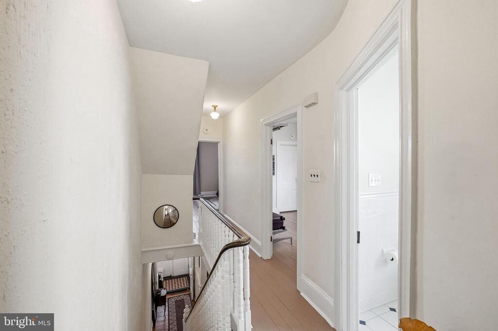 Welcome to this charming brick rowhome located in Burlington's Historic District, where timeless character meets modern comfort. Step inside through the inviting first-floor double doored foyer to find hardwood flooring flowing throughout the spacious living and dining rooms, with newer windows and recessed lighting --perfect for everyday living and entertaining. The eat-in kitchen is a standout, featuring granite countertops, tile backsplash, custom cabinetry, updated lighting and stainless steel appliances. Off the kitchen is a back porch to enjoy morning coffee or an evening beverage to end your day. The second floor features a generously sized primary suite with a private bath, along with a full hall bath and a convenient laundry. Two additional guest rooms complete this level, one of which is currently being used as an impressive walk-in closet and dressing room, offering flexibility to suit your needs. The third floor adds even more living space with a bonus room ideal for a home office, playroom, or media room, plus an additional guest room. Enjoy everything this historical town has to offer, walk to the new restaurants and adorable coffee shop. Walkable to light rail station and bus stops for commuting out of the area. Convenient to major roadways This beautiful home combines historic charm, thoughtful updates, and versatile living spaces in a truly special setting.