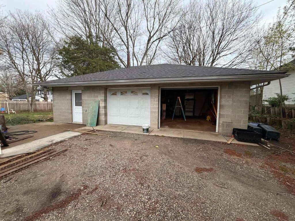This is 2 bedroom,1.5 bathroom single family ranch style home. This property has a detached 2 car garage with extra storage space in the garage and an attic in the garage. This property also has a storage shed in the back that has 2 lofts with ladders that can be used for storage. The property has partial basement and partial crawl space. Central air,washer/dryer hook-up,stove,refrigerator,new carpet