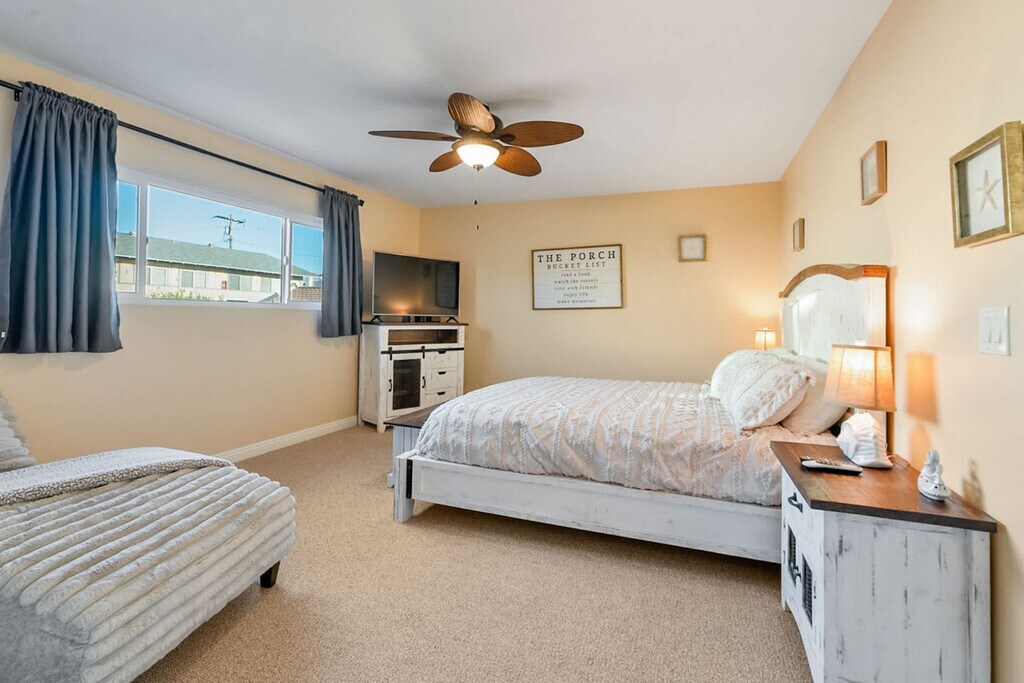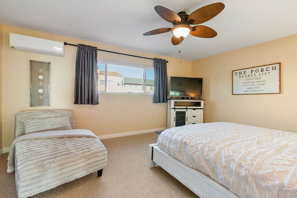 Experience coastal living at its finest in this stunning 3-bedroom, 2-bath beachfront property in Carlsbad. Enjoy breathtaking ocean views from the spacious open-plan living area and private balcony. Retreat to the luxurious primary suite and feel at home. Welcome to your dream vacation rental in Carlsbad, where luxury meets the breathtaking beauty of beachfront living. This meticulously remodeled home boasts a stunning exterior that seamlessly blends modern design with coastal charm. Step into the beautifully landscaped backyard, a true oasis equipped with elegant outdoor furniture perfect for lounging, a rejuvenating hot tub, and an outdoor shower to rinse off after a day on the beach. The ambient lighting creates a warm atmosphere for evening gatherings by the fire pit. Inside, the home is thoughtfully designed with comfort and style in mind. The spacious living area features a state-of-the-art 75-inch TV for cozy movie nights or catching the big game. Enjoy your morning coffee or evening cocktails on the private balcony, where the sound of waves provides the perfect soundtrack to your relaxation. Each bedroom is furnished with luxury mattresses, ensuring restful nights after fun-filled days by the ocean. Indulge in the spa-like experience of the rainfall shower in the master bath, creating a serene retreat within your own home. With efficient heating and cooling, this property ensures your comfort in every season. This beachside gem is just steps from the sandy shores, making it the ideal spot for families or friends looking to create lasting memories in Carlsbad. App messaging is preferred for guest interaction. [SI]