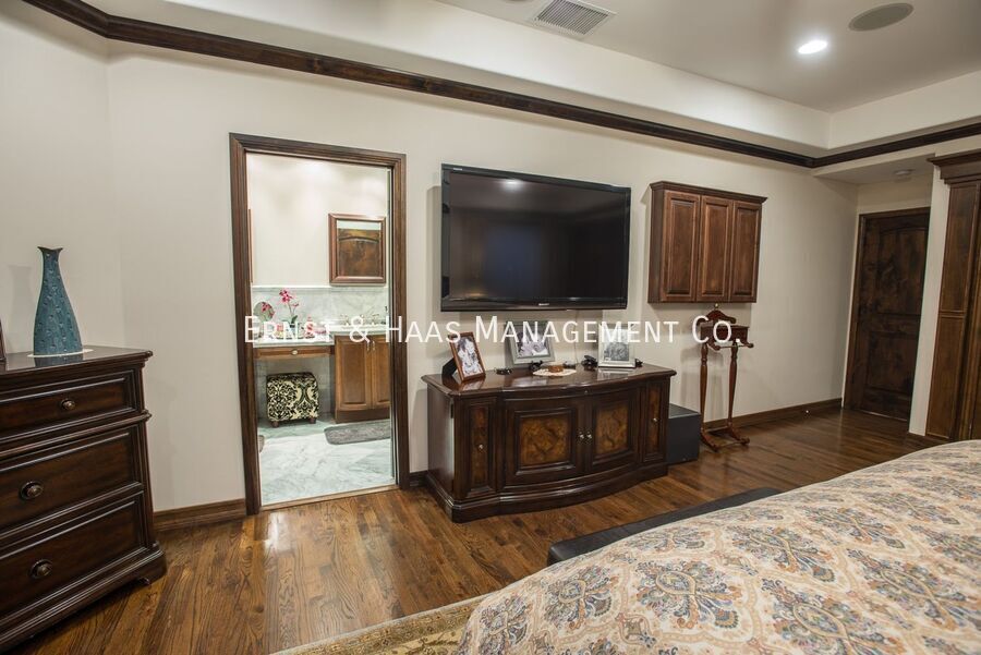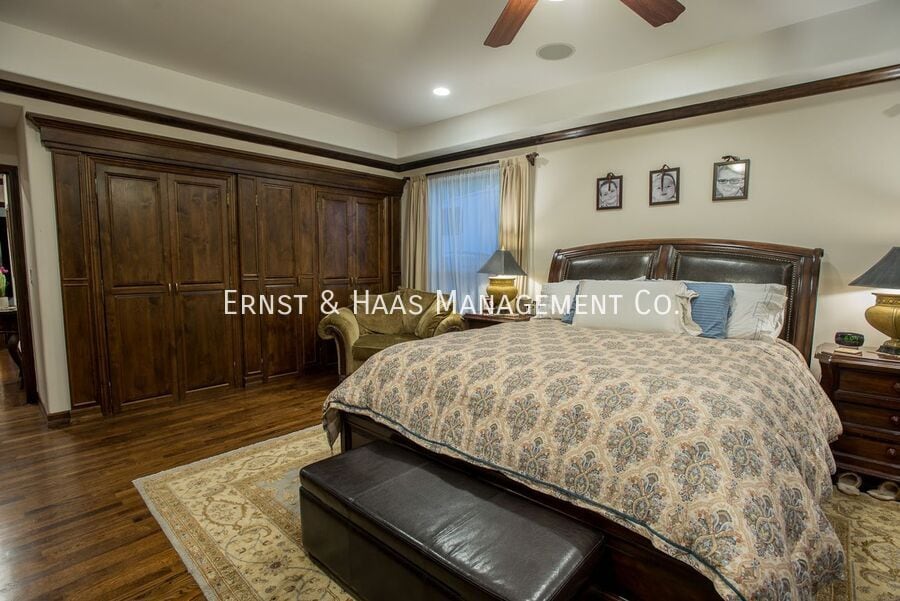 Behind private Spanish gates, this stunning executive residence immediately conveys refined luxury, with no detail overlooked in its extensive interior and exterior upgrades. Elegant Corinthian columns and solid stone accents frame the home, complemented by a Spanish tile roof and an Italian smooth-coat exterior finish that extends seamlessly around the entire perimeter. A grand foyer opens to a light-filled, open-concept floor plan, where expansive Pella French doors showcase views of the newly built resort-style pool from nearly every main living space. The state-of-the-art pool and cascading waterfalls are fully smartphone-controlled, creating an effortless indoor-outdoor living experience. Designed for entertaining, the rear yard and patio feature a striking fireplace and a custom island with built-in barbecue—ideal for gatherings year-round. The gourmet kitchen is a chef’s dream, offering custom solid-wood cabinetry, rich granite countertops, a large center island, and a spacious peninsula-style dining area. Travertine marble tile and hardwood flooring flow throughout the home, enhancing its warmth and sophistication. An expansive upstairs loft overlooks the main living area and enjoys serene views of the backyard and pool, making it ideal for a home office, library, or guest retreat. The luxurious primary suite features custom walk-in closets, built-in ceiling surround sound, and direct access to a spa-inspired bathroom complete with dual Italian Carrara marble vanities and a separate soaking tub and shower. Additional highlights include vaulted ceilings, crown molding, recessed lighting, triple-pane windows, central heating and air conditioning, and a fully finished garage. Automatic sprinklers maintain the beautifully manicured, low-maintenance landscaping. Ideally located near Wardlow Avenue and Bellflower Boulevard, this exceptional home offers convenient access to premier shopping, dining, and award-winning schools—delivering both elegance and everyday convenience. For more information on this or any other available property, please contact Ernst & Haas Management at or visit us online at and apply today. To qualify: • Credit score must be no less than 670. • Monthly gross income to qualify must be 2.5 times the rent • We do not accept past evictions, judgments, or collections from a management company or landlord • Renter’s Insurance is required. Proof of coverage must be provided upon the signing of your lease. • Tenant that has an animal shall obtain a policy that provides coverage for the animal. • Guarantors must have a FICO credit score of 725 or higher. Scores below 725 will not qualify Note: See selection criteria for a detailed list of qualifications on our website at