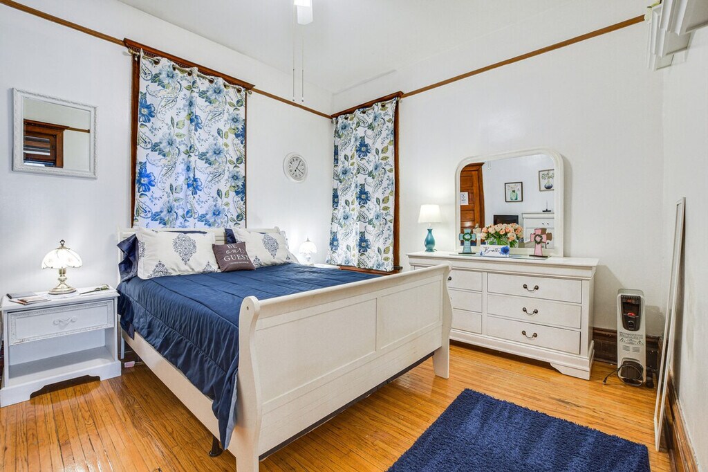 Experience city life to its fullest from this Chicago vacation rental nestled in East Garfield Park. This single-story apartment is located on the building’s 2nd floor, requiring stairs for entry, and is about a half-mile from the Green Line and the Conservatory. The heart of the city is just 5 miles away, making it easy to feel at home while exploring all that Chicago has to offer. The apartment features Victorian period furniture and offers a cozy living space with 5 smart TVs with cable, board games, and 2 electric fireplaces. The kitchen is fully equipped with a refrigerator, stove and oven, drip coffee maker, toaster oven, and kettle, along with cooking basics, dishware, and flatware. Enjoy the fenced-in yard, balcony with dining tables, and both gas and charcoal grills for outdoor relaxation. Street parking is available on a first-come, first-served basis. Nestled in East Garfield Park, this apartment offers a convenient location about a half-mile from the Green Line and the Conservatory. The heart of the city is just 5 miles away, allowing easy access to sledding at Northerly Island, enjoying hot chocolate at one of Chicago’s cozy cafes, or attending Wrigleyville’s Winter Wonderland. This property features delicate decor, including glass tables and sharp and expensive decorations, and may not be suitable for young children. The homeowner lives on-site in the 1st-floor unit with a separate entrance and may be present during your stay. Your safety matters, as this property features 7 exterior security cameras that are outward facing and do not look into interior spaces. No smoking, no pets, and no events, parties, or large gatherings are allowed. Guests must be at least 25 years old to book. Additional fees and taxes may apply, and a photo ID may be required upon check-in. The apartment offers free WiFi, making it remote work-friendly. Registration Number: R2 [SI]