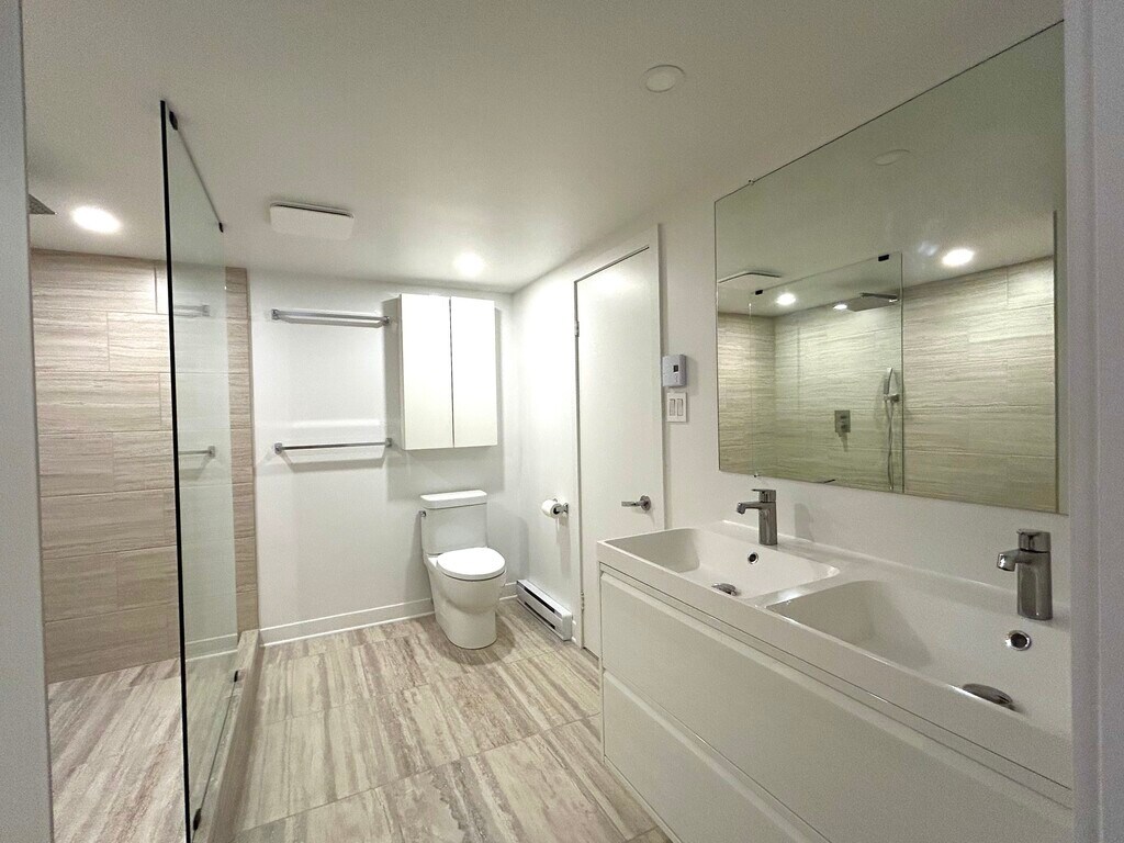 Highly demanded Montreal neighbourhood: Rosemont Shops Angus Very large renovated apartment, 2 bedrooms, 1 bathroom (100 square meters - 1,076 square feet) CA$ 2,200/month (heating not included) No smoking. No pets allowed. We offer you the quiet and security of one of Montreal's most sought-after residential neighbourhoods, with a street lined with mature trees, used only by residents. Street parking is easy, as long as you follow the signs. The Joliette metro station (Green Line) is about a ten-minute walk away and is located five metro stations from the Berry UQUAM station in downtown Montreal. You can easily access the Olympic Stadium, the botanical garden, insectarium, biodome, and planetarium, as well as Maisonneuve Park in just a few minutes via the bike path on Rachel Street or on foot. No need for a car, all amenities are within walking distance. (Maxi, SAQ, Metro grocery store, Provigo, Canadian Tire, Brunet pharmacy, cheese shop, hair salon, Angus medical clinic, CLSC, Shop Angus restaurants). The apartment is located on the second floor, with a large balcony (73 square feet) facing a pleasant park. The balcony is designed to give you as much privacy as possible. Large living/dining room with enough space for a workstation. Spacious and bright master bedroom with mini walk-in closet and direct access to the bathroom. Second bedroom: this room can be arranged according to your needs: children's room, guest room, or home office. Bedrooms: *Both bedrooms have blackout shutters and light fixtures with fans (new). The bathroom, which has been completely renovated and is very spacious (approximately 100 square feet – almost 10 square meters), features a large walk-in shower, double sink vanity, and plenty of storage space. The kitchen, also very spacious, is equipped with an oven, refrigerator, dishwasher, and range hood. A large private locker in the basement of the building is available for storing ski equipment or other odds and ends. Viewings by appointment only.