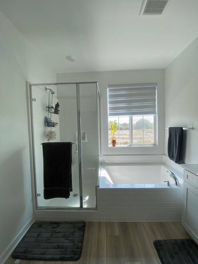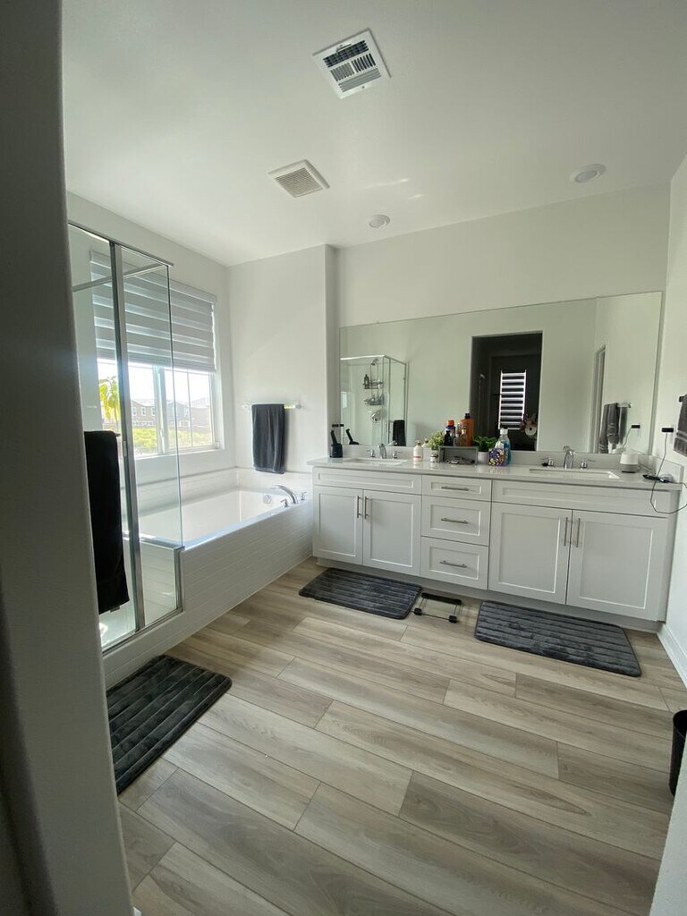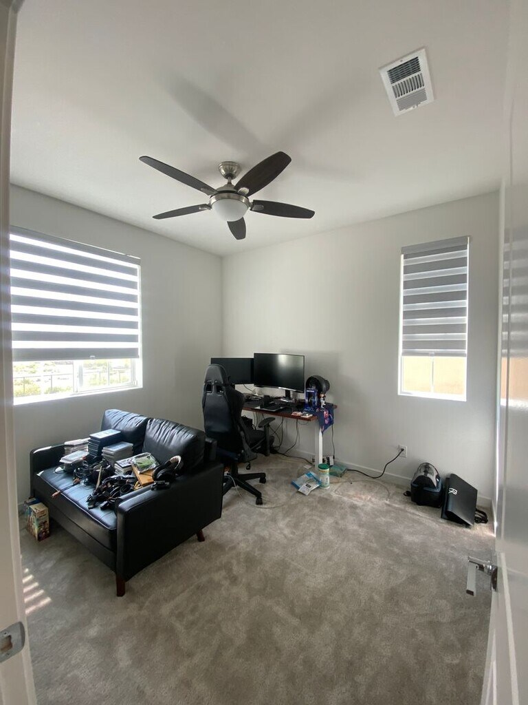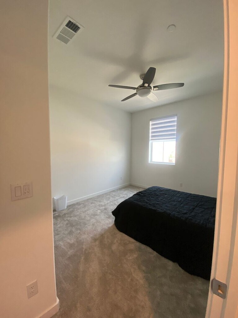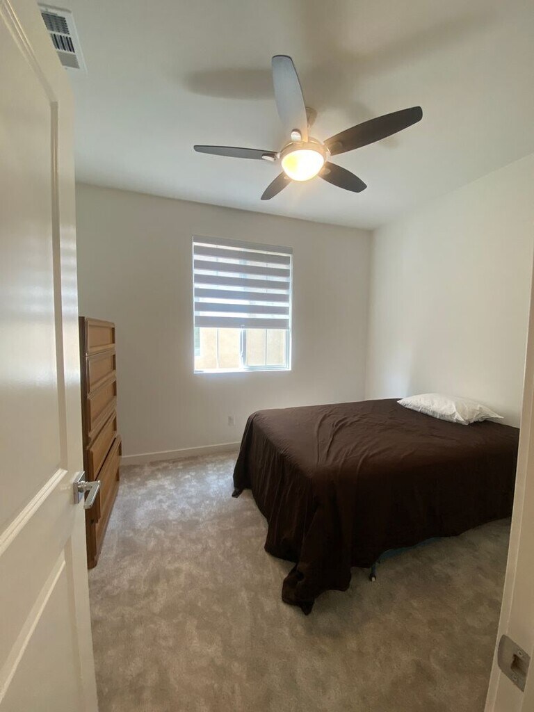 Next to brand new 4 bedroom home with 2 1/2 bathrooms. Two story home located in Ontario Ranch with long driveway and large back patio. Home is upgraded with Solar, Quartz Counters, Stainless Appliances, Electronic Shades and Ceiling Fans. Laminate Plank downstairs and bathrooms and carpet upstairs. Large closets and Lots of extra storage space including linen closet and pantry. Community pool (very close by) and playground. Two car garage. Includes washer and dryer in upstairs laundry room. Close to 60 freeway, NEW Dodgers Minor League Stadium and Shopping and Restaurants. Pet Restrictions. Everyone 18+ MUST apply online Shedlock Properties.