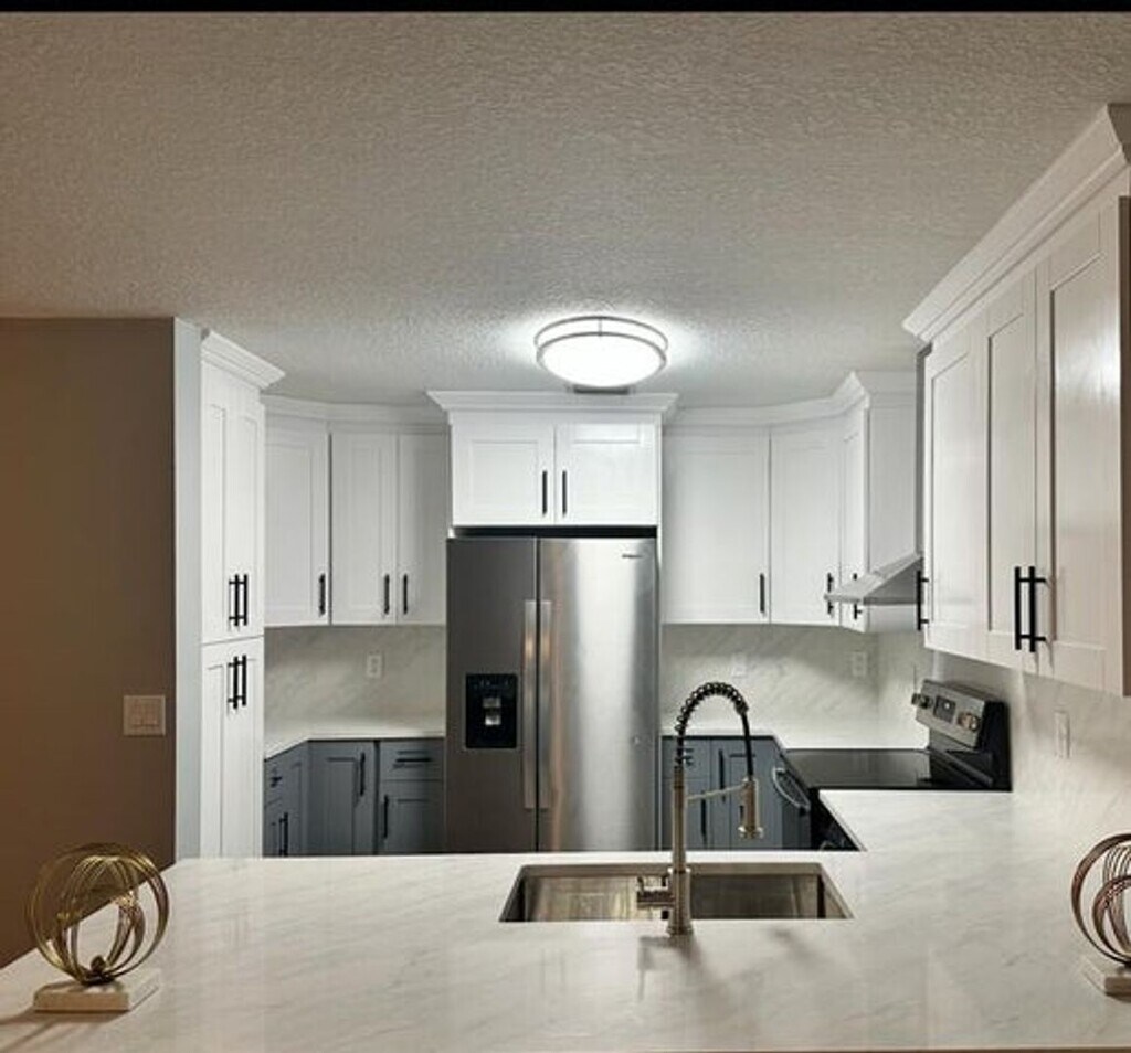 Courtesy of Selected Homes Realty LLC. Recently renovated with a brand-new kitchen featuring quartz countertops, plus a modern bathroom with glass-enclosed shower and new ceiling.
