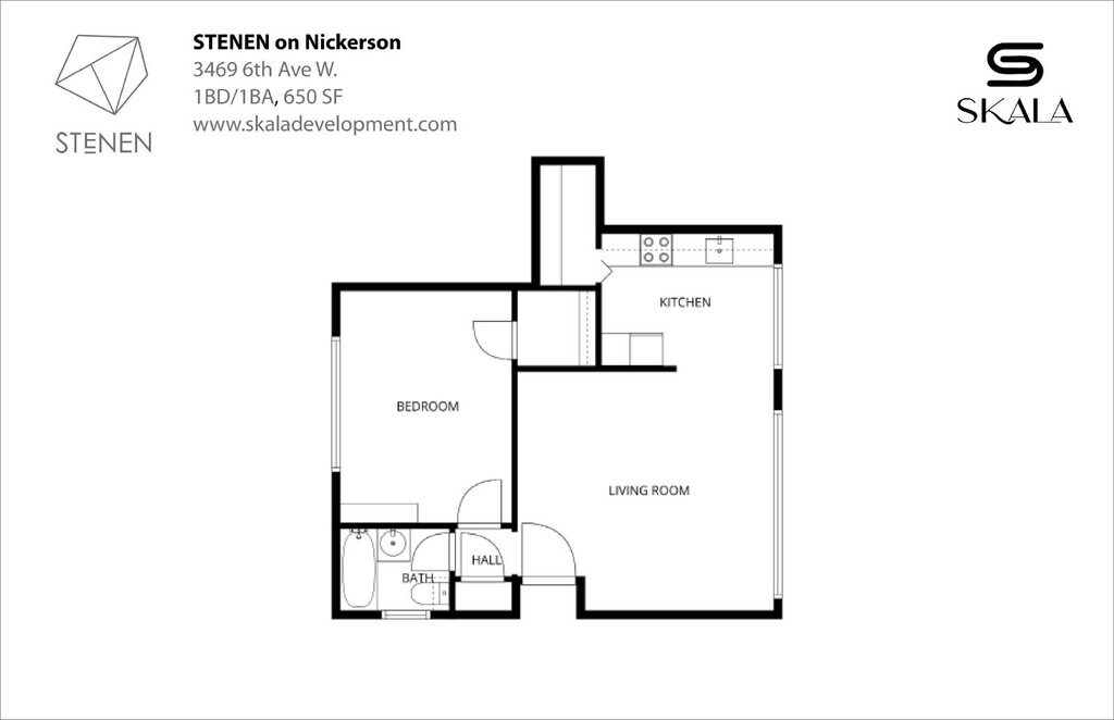 There is currently a 1 Bed 1 Bath Apartment for rent with 650 listed at 3469 6th Ave W. It is Available Now.