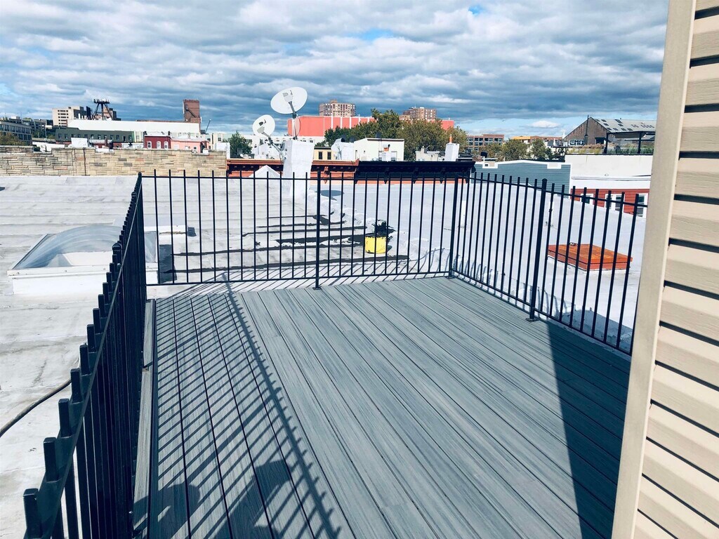 Spacious 2 bedroom 1 bath on top floor with an exclusive roof deck! Perfectly located in downtown JC; close pedestrian walkway, near all shopping, restaurants and parks, also walking distance to Grove St Path. This unit has an open floor plan with custom kitchen, custom cabinets, hardwood flooring, central air and heat, granite countertops all SS appliances Washer/dryer in unit and tons of counter space!