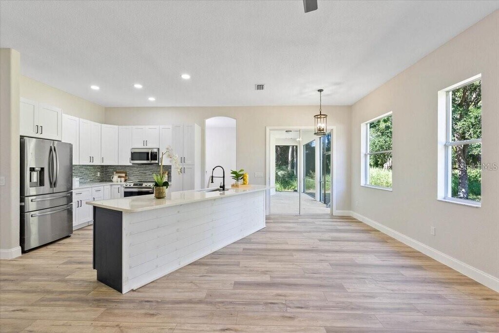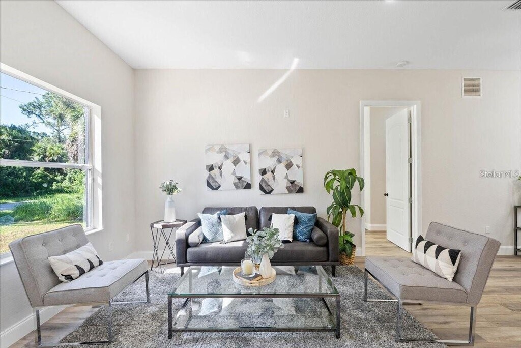 Located in the sought-after North Port area, this fully renovated 3-bedroom, 2-bathroom home is a standout. It features a new roof, A/C, garage doors, fresh paint inside and out, and new luxury vinyl flooring throughout. The stunning kitchen boasts a blue island with radiant quartz counter- tops, 26-inch shaker-style cabinets, and a beautiful glass backsplash. The spacious family and dining rooms are filled with natural light. The primary bedroom accommodates a king-size bed with ample space. The updated bathrooms feature mosaic-tiled showers, a freestanding clawfoot tub, and new mirrors, light fixtures, and vanities. Listing posted by iRental Homes [SYNDID 4139402 10152025]
