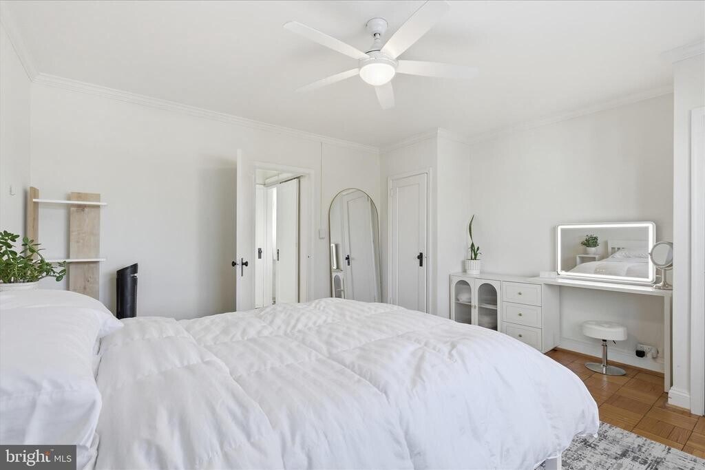 Available 1 April! Welcome to your stunning remodeled one-bedroom, one-bathroom home! The kitchen has been fully updated with stainless steel appliances, ample cabinetry, and a dishwasher. A spacious stackable washer and dryer are discreetly tucked away in a cabinet. Gleaming hardwood floors extend throughout the entire home. Both the bedroom and the open living-dining area are generously sized. The home also features elegant crown molding and energy-efficient double-paned windows. You'll love the prime location, close to Washington, D.C., Old Town Alexandria, and Reagan National Airport, with four shopping centers just five minutes away. As a resident of ParkFairfax, you'll have access to incredible community amenities, including three indoor pools, six-day-a-week trash and recycling pick-up, a recycling center, a car wash facility, on-site maintenance, a tot lot, supplementary laundry rooms, bus stops, and much more.