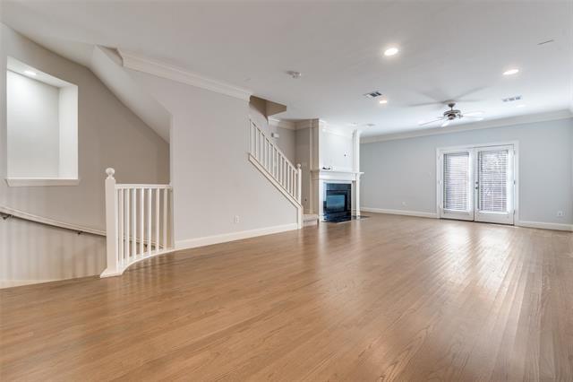 Howell Park townhouse in a prime Uptown Dallas location. Desirable, quiet interior unit just three blocks from McKinney Avenue dining and trolley line, and only six blocks to the Katy Trail. This well-maintained three-bedroom home features hardwood floors and new carpet throughout. Spacious open living area with gas fireplace flows to an eat-in kitchen offering a gas cooktop, stainless steel appliances, island, breakfast bar, and private balcony. The third-floor primary suite includes a walk-in closet and separate shower. Attached two-car garage plus a small fenced yard. Refrigerator and washer dryer convey.