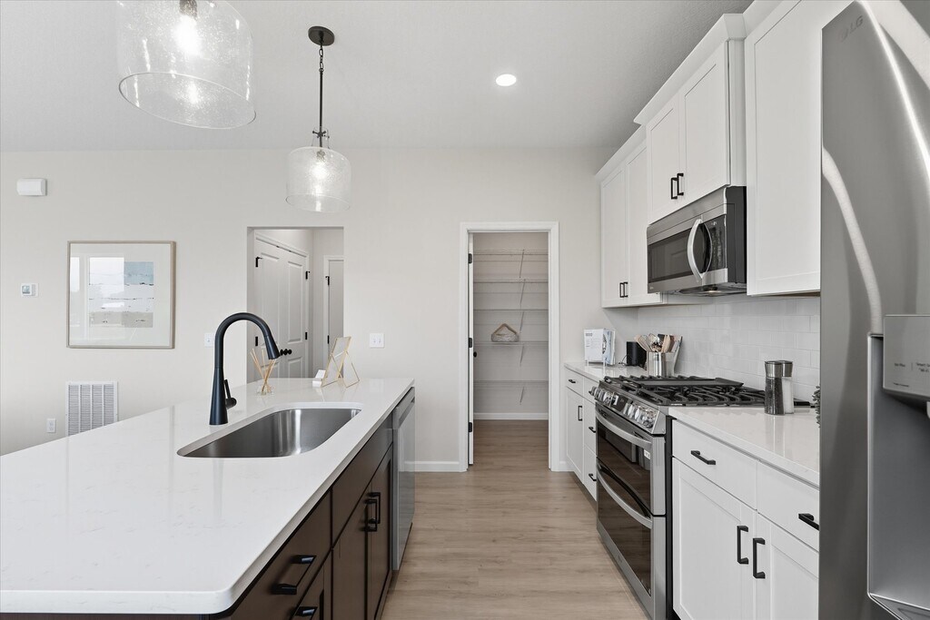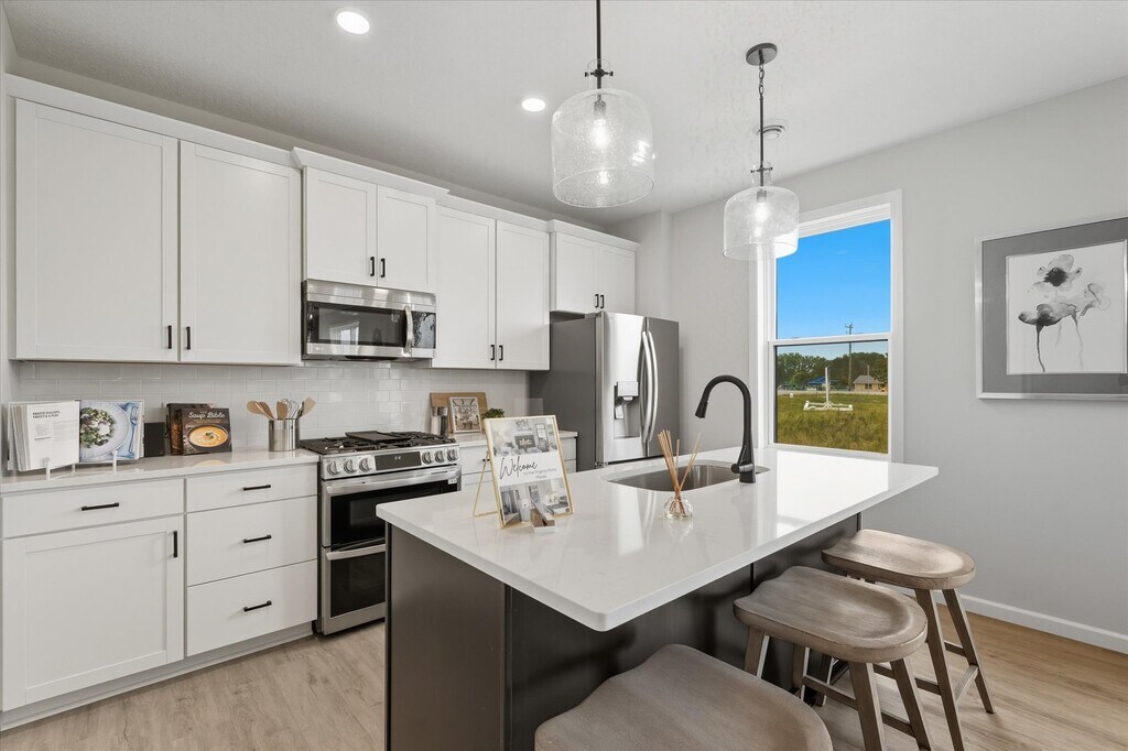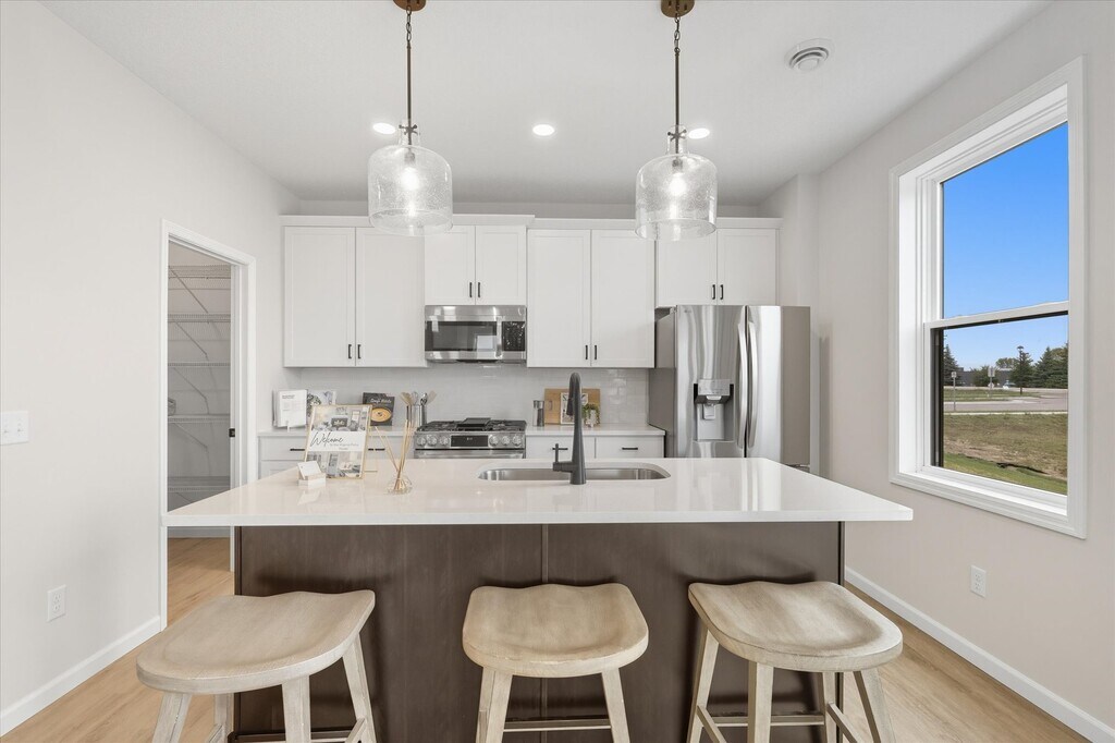 Spacious and well-designed two-story home in desirable Lake Elmo, Minnesota, offering easy access to everyday conveniences and local attractions. This property is perfectly positioned just minutes from scenic Lake Elmo Park Reserve — a 2,100+ acre outdoor destination with miles of trails, picnic areas, swim pond, horseback riding and more — ideal for hiking, biking and outdoor recreation year-round. The community is also close to a variety of local dining and shopping options — including favorites like Lake Elmo Inn, Gorman’s Restaurant and Lake Elmo Coffee — and well-connected to major roads for quick access into Woodbury and the Twin Cities for additional retail, entertainment and transit options. Inside, the main level features a bright open floor plan with large windows, a flexible bonus room ideal for a home office or play area, and a convenient mudroom with a built-in bench off the entry. The kitchen is thoughtfully designed with tall upper cabinets, gas range, upgraded French door refrigerator, double trash rollout and a walk-in pantry — perfectly suited to everyday living and entertaining. The adjoining living room includes an electric fireplace and plenty of natural light. Upstairs you’ll find four bedrooms, two full bathrooms, and a dedicated laundry room with a front-load washer and electric dryer included. The primary suite features a double vanity, large tiled shower with sliding glass door, and an oversized walk-in closet. A two-car attached garage offers additional storage and year-round vehicle access.