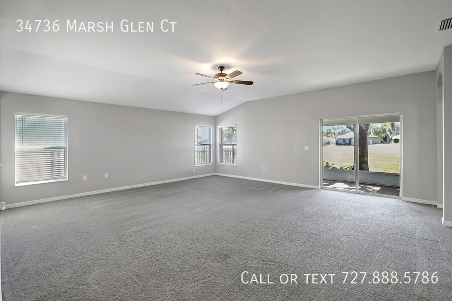 Elegant Golf Course–Adjacent 4-Bedroom Home with New Roof & Expansive Living Spaces Discover refined Florida living at 34736 Marsh Glen Ct, Zephyrhills, FL 33541, a beautifully updated 4-bedroom, 3-bathroom residence offering exceptional space, natural light, and a highly desirable golf course-adjacent setting. Recently enhanced with a brand-new roof and fresh, modern paint, this home is truly move-in ready. The thoughtfully designed floor plan features soaring high ceilings, an open walkway, and oversized windows that create a bright, airy atmosphere throughout. Ceiling fans in every room add comfort and efficiency, while the home's generous proportions make it ideal for both everyday living and entertaining. The kitchen is both functional and inviting, complete with all major appliances—dishwasher, refrigerator, stove, and microwave—along with abundant cabinetry, expansive counter space, and a breakfast bar that seamlessly connects to the open dining area. The primary suite is a private retreat, offering ample closet space and a spa-inspired bathroom with a double vanity, luxurious soaking tub, and separate walk-in shower. Additional bedrooms are spacious and well-appointed, providing flexibility for guests, family, or home office needs. Large sliding glass doors lead to a screened-in patio, perfect for enjoying indoor-outdoor living in a serene setting. The exterior is enhanced by mature palm trees, a two-car garage, and convenient electric or gas laundry hookups. With its premium location, recent upgrades, and expansive layout, this home delivers comfort, elegance, and long-term value — a rare opportunity in Zephyrhills. Elegant Golf Course–Adjacent 4-Bedroom Home with New Roof & Expansive Living Spaces Discover refined Florida living at 34736 Marsh Glen Ct, Zephyrhills, FL 33541, a beautifully updated 4-bedroom, 3-bathroom residence offering exceptional space, natural light, and a highly desirable golf course-adjacent setting. Recently enhanced with a brand-new roof and fresh, modern paint, this home is truly move-in ready. The thoughtfully designed floor plan features soaring high ceilings, an open walkway, and oversized windows that create a bright, airy atmosphere throughout. Ceiling fans in every room add comfort and efficiency, while the home's generous proportions make it ideal for both everyday living and entertaining. The kitchen is both functional and inviting, complete with all major appliances—dishwasher, refrigerator, stove, and microwave—along with abundant cabinetry, expansive counter space, and a breakfast bar that seamlessly connects to the open dining area. The primary suite is a private retreat, offering ample closet space and a spa-inspired bathroom with a double vanity, luxurious soaking tub, and separate walk-in shower. Additional bedrooms are spacious and well-appointed, providing flexibility for guests, family, or home office needs. Large sliding glass doors lead to a screened-in patio, perfect for enjoying indoor-outdoor living in a serene setting. The exterior is enhanced by mature palm trees, a two-car garage, and convenient electric or gas laundry hookups. With its premium location, recent upgrades, and expansive layout, this home delivers comfort, elegance, and long-term value — a rare opportunity in Zephyrhills. Unit amenities Carpet, Cat friendly, Ceiling fan, Climate control, Dishwasher, Disposal, Dog friendly, Double sink vanity, Garage parking, Heat, Laundry hookup, Linen closet, Microwave, Pet friendly, Private patio, Refrigerator, Storage space, Stove and oven, Tile floors, View, Walk-in closets
