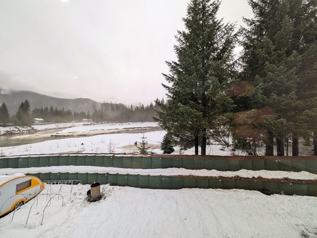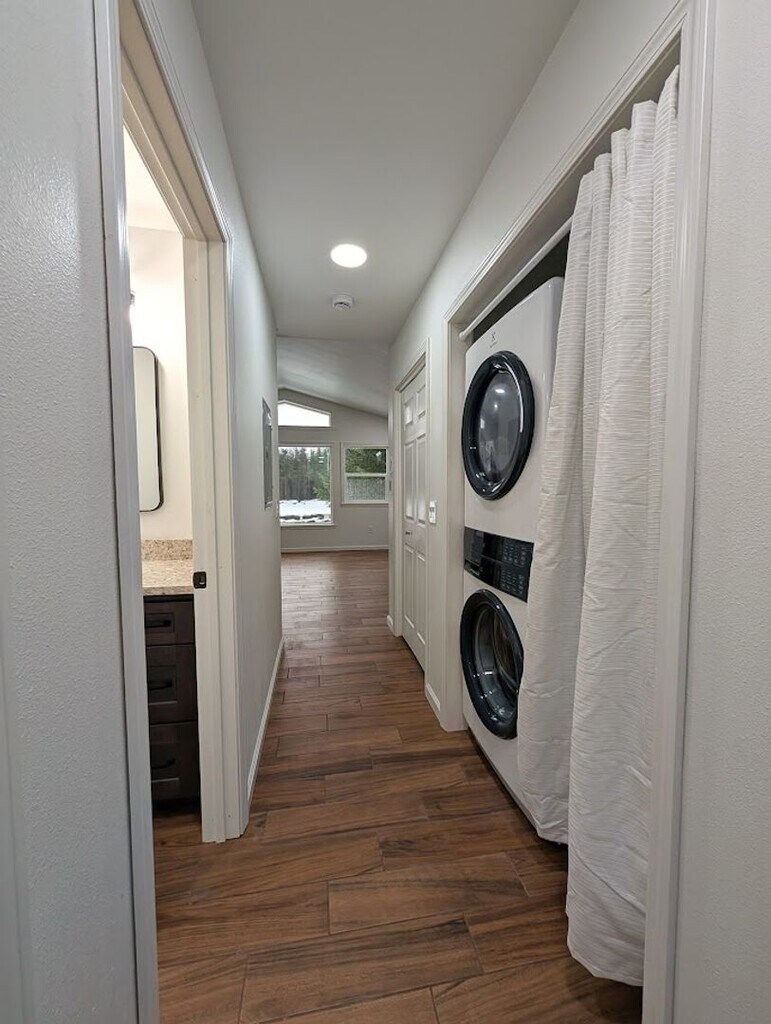 Featuring 2 bedrooms and 1 full bathroom, this newly built property offers riverfront views. The interior has elegant tile flooring that mimics wood, cathedral ceilings throughout, and vaulted ceiling in the living room with large picture windows. The kitchen is equipped with modern stainless steel appliances, including a dishwasher and microwave range hood. Additionally, there are front-load stacked laundry machines for your convenience. The apartment spans 850 square feet with in-floor heating. There is off-street parking space for one car. Pet(s) considered with approval. Tenants are responsible for electric (which includes heat and hot water, on a separate meter), snow removal, and trash disposal, while the owner covers water and sewer expenses.