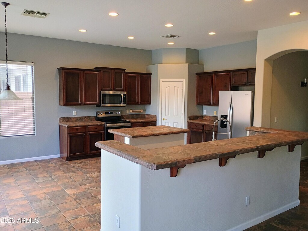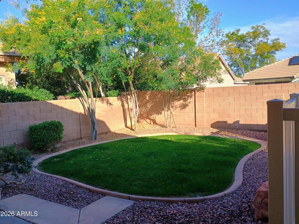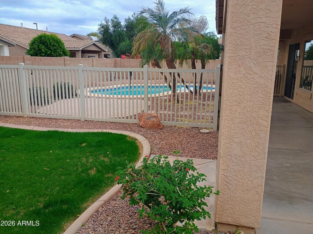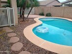 Beautiful! 4 bedroom house with fenced pool just steps away from Chaparral Elementary School. Double island kitchen appointed with brand new stainless steel appliances! Easy access to Higley Rd and 202 freeway. Desert landscaping in front,grass and private pool in back. Great neighborhood! Make this home yours today. Pool service included in rent.