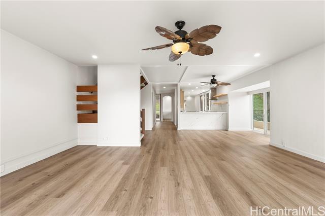 ( Non-furnished) Experience luxury living in Lanikai with this rare 4-bedroom, 2.5-bath corner end townhome at Bluestone perfectly positioned to capture sweeping views of the Ko'olau mountain range and the Mid-Pacific Country Club golf course. Offering exceptional privacy and generous interior square footage (2,200 sqft living) this residence also features a wrap-around lanai ( and a versatile third-level bonus room ideal for an office, studio, or additional living space. Thoughtfully renovated with high-end finishes, the gourmet kitchen boasts Calacatta Laza quartz countertops with a waterfall peninsula, a farmhouse sink, Monogram appliances, and durable Makai Vinyl windows and doors designed for Hawaii's tropical climate. Designer details continue throughout with Hunter Douglas shades, vinyl shutters, custom built-out walk-in closets. For added convenience, the home features two covered parking stalls and a dedicated storage unit located directly adjacent.