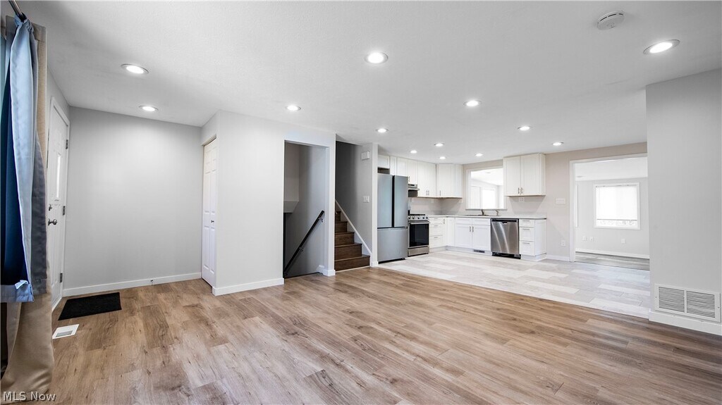 Beautiful split-level home located in a quiet area close to Kent City Schools. Upon entering,you are greeted by an open living room and kitchen. Beyond the kitchen is a large sunroom that doubles as a dining area. The lower level features a spacious primary bedroom with a private bathroom,as well as access to the mechanical room and a fully finished basement. The basement provides ample storage space,washer and dryer hookups,and a third full bathroom. The second level includes three additional bedrooms and another full bath. The spacious backyard can be accessed through either the dining area or the one-car garage. Please note that the tenant is responsible for all utilities,landscaping,and snow removal. Don't miss out on this beautiful home!