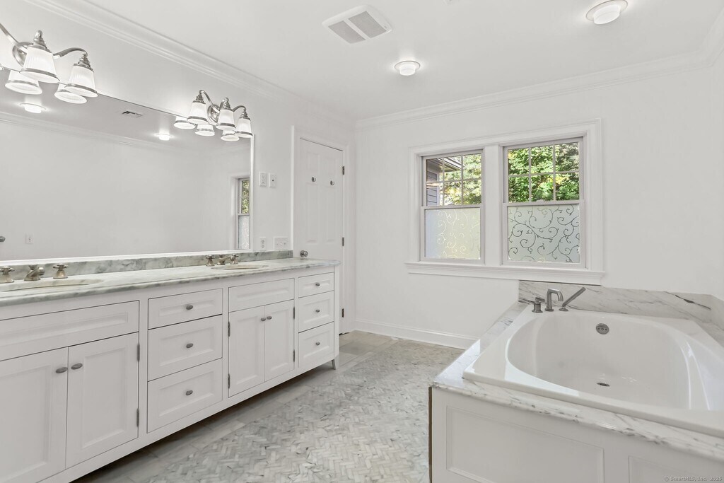 Call for Availability - Only four blocks south of the village, experience the best of Old Greenwich living in this sophisticated Nantucket Shingle-Style Colonial. Built in 2007, this residence has been meticulously refreshed with a contemporary aesthetic and modern amenities to meet the demands of today's buyer. Set in a coveted central location, the home offers an expansive 5,500 square feet of finished living space, featuring a specious 6-bedroom, 5 1/2-bathroom layout. The airy, open-concept design seamlessly blends formal entertaining areas with casual family living. The main level is anchored by a gourmet chef's kitchen with professional-grade appliances, which flows into the family room with generous built-in cabinets and a fireplace. Adjacent to the family room is a tranquil sun-filled sun room. From the sun room, step out onto the stone patio and private backyard. Architectural details include a sweeping entry, high ceilings throughout, custom built-ins, a welcoming mahogany wrap-around front porch, and a unique leaded glass antique front door. Upstairs, the master suite provides a peaceful retreat with a luxurious bath and two custom walk-in closets, while additional bedrooms offer space and comfort for family or guests. The finished lower level includes a fireplace in the family room, a bedroom, a complete bathroom, a generous wet bar and a second washer and dryer, as well as ample storage space. MLS# 24136104