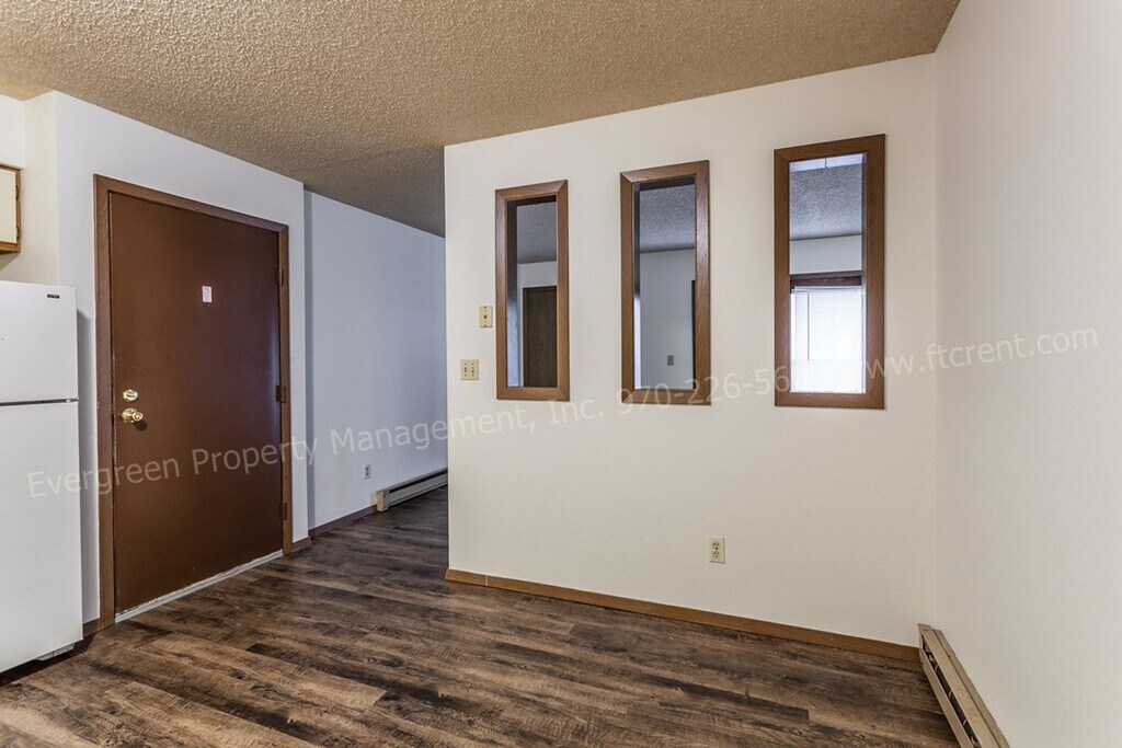 This beautiful and unique 2-bedroom 1-bathroom apartment is located in South Loveland. Features of this spacious 990 square foot first-floor unit include a patio, on-site laundry, off-street parking, a dishwasher and an eat-in kitchen. Enjoy beautiful foothills views in a quiet cul-de-sac! You’ll be near Jayhawker Ponds, River’s Edge Natural Area, Centennial Park, Schuster Lake, Namaqua Park, and just 6 minutes to shopping, dining, museums, and art galleries in Downtown Loveland. Residents are required to put electricity into their name, pay a prorated charge of $101/month for water and trash, as well a $5/month common area cleaning fee. Cats will be considered with an additional $300 pet deposit per pet and $35/month pet rent per pet. Proof of spay/neuter is required. Sorry - no dogs! Important Information: Note: We have several units at this property. Photos and 360 tours are for marketing purposes only and may not represent actual unit. Non-refundable $55 application fee. All residents 18 years of age and over must apply. - Security deposit is usually equal to 1 month's rent. - Visit our website for qualifications and exclusions. Apply online today, or call Evergreen Property Management, Inc at to schedule a showing! for our online application, requirements, and other available units! All applicants are responsible for verifying all information prior to signing a lease agreement. Evergreen Property Management, Inc. cannot verify the accuracy of property information listed on third party websites. Please visit our website to confirm property information and availability. Visit or call . (Measurements are for the purpose of marketing and may not be exact. If exact square footage is a concern, the property should be independently measured).