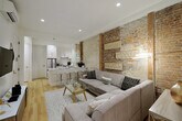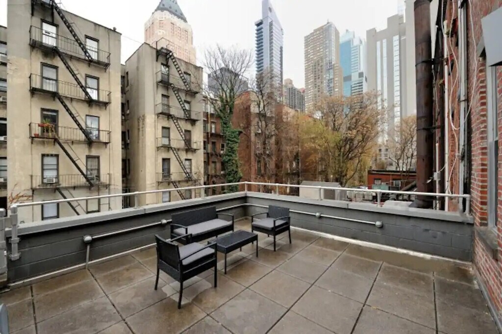 Feel at home in this charming 2-bedroom, 2-bathroom apartment just steps from Times Square. This apartment is on the second floor of a walk-up building, accessible by one flight of stairs. This quintessential New York City apartment offers a cozy living room with comfortable seating and exposed brick walls. The fully equipped kitchen features modern appliances, including a dishwasher, fridge, oven, and stove, as well as full cookware and dinnerware. The kitchen island with bar seating is perfect for enjoying a quick breakfast or drinks. One of the apartment’s most unique features is the shared rooftop access. In-unit washer and dryer are available for your convenience. Situated in the heart of Manhattan, this apartment puts you just moments away from some of New York’s most famous attractions. Stroll to Times Square, catch a Broadway show, or explore world-class restaurants just around the corner. With easy access to public transportation, you can venture out to explore the entire city with ease. Typical city noises, such as traffic, sirens, and street activity, are to be expected, especially due to the central location near Times Square. Light sleepers may want to bring earplugs.