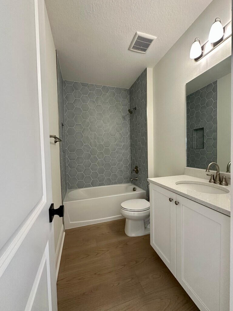 Be the very first to live in this stunning, brand-new home! This beautifully designed new construction offers the perfect blend of modern style, space, and unbeatable convenience. Featuring 4 bedrooms, 3 bathrooms, and a 2-car garage, this home showcases an open-concept floor plan filled with abundant natural light and luxury vinyl flooring throughout the entire house no carpet anywhere for a sleek, modern look that's easy to maintain. The heart of the home is the chef-inspired kitchen, complete with a large center island, ample cabinetry, pantry storage, and all brand-new stainless-steel appliances perfect for everyday living and entertaining. The kitchen flows seamlessly into the spacious living and dining areas, ideal for gatherings or relaxing evenings at home. The first-floor primary suite serves as a private retreat with dual walk-in closets and a spa-like en-suite bathroom featuring dual vanities and a walk-in shower. An additional bedroom and full bathroom on the main level provide flexibility for guests or a home office. Upstairs, a versatile loft/game room offers endless possibilities, along with two generously sized bedrooms and a full bathroom. Designed with energy efficiency in mind, the home features modern construction elements and high-performance windows for comfort and savings. Prime Wesley Chapel location! This home is just steps from the community pool and zoned for top-rated schools, while also being minutes from restaurants, shopping, and everyday conveniences including The Shops at Wiregrass, Tampa Premium Outlets, Sam's Club, Publix, and Walmart. Easy access to major roads makes commuting a breeze. Brand new. Never lived in. Vinyl flooring throughout. Move-in ready. Schedule your showing today this exceptional home won't last!