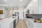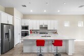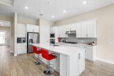 Here's your opportunity to rent this imaculate 2024 home featuring 3 bedrooms and 2.1 baths. This property showcases over $100,000 in upgrades, including wood-like tiles throughout, enhanced tile work in the bathrooms and kitchen, fresh paint, and a covered patio. The impressive gourmet kitchen is equipped with a spacious island offering extra storage and seating, a large pantry, and a gas range. The expansive primary suite features two walk-in closets, dual sinks, an oversized shower, and a convenient passthrough to the laundry room. The second bedroom is thoughtfully separated for privacy, includes a walk-in closet, and features an ensuite bath. The third bedroom, currently utilized as a den, boasts double doors, a walk-in closet, and flexibility for your lifestyle needs.