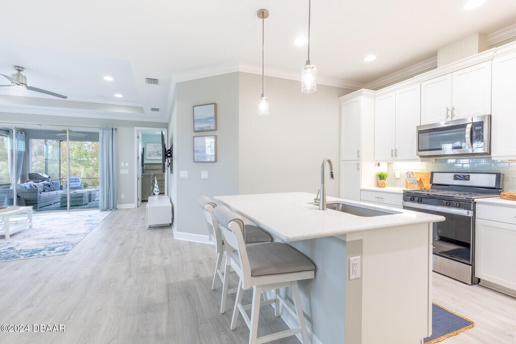 Stunning Lucia model for rent! Available March 1*Price includes utilities up to 250.00/ month. Welcome home to this Beautifully FURNISHED villa available now for rent in Fabulous Latitude Margaritaville Daytona Beach! 2 bedrooms,DEN,huge great room,laundry room with full sized washer and dryer,2 car garage...this villa has it all! You will LOVE the coastal feel of this villa. Great location with a tranquil view of the trees. Amazing kitchen with island seating and dining area. Plenty of room to relax and enjoy time with family and friends. Experience the best of outdoor living on the extended lanai. Latitude Margaritaville is a 55+,private,gated community. 3 heated pools,1 indoor,an outdoor sports pool and the resort style main pool. PRIVATE BEACH CLUB! Live music at the Bar and Chill Restaurant. State of the art Fins Up Fitness Center,Mango Theater,dog park,PICKLEBALL,and TENNIS. Come visit this FINtastic community. No pets