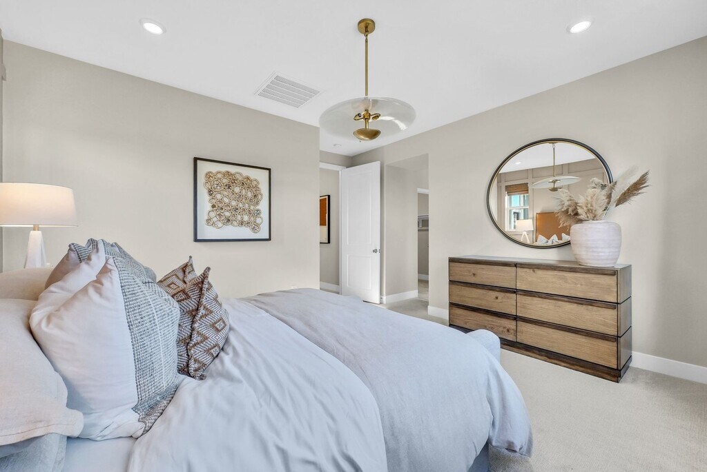 Introducing a gorgeous newly built 2-story residence in the prime location of Luna Park, Great Park, Irvine. Located just across the street from the park, where you can enjoy the pools, basketball court, pickleball court and kid playground. The exterior welcomes you to a mini garden and outdoor sitting in front yard, and as you step inside the house, you will discover a beautifully designed kitchen with a large island and all high-end appliances for your culinary hobby. Living room with comfortable furniture flows into dining area, with view to a charming backyard. There is 1 bedroom downstairs while a master suite and 3 other bedrooms are upstairs. One of the upstairs bedrooms has a separate staircase and comes with a versatile loft, for those who seek extra privacy inside your home. Walking up to the 2nd upstairs area of the house, you will find the master suite and 2 bedrooms with a shared bathroom, and a laundry room. Indulged yourself in the spacious master suite with an in-suite bathroom, which has a double vanity for his and hers, a walk-in closet, and a private water closet. With the prime location, approximately close to Irvine Spectrum, Great Park Sports Complex, shopping, exquisite dining restaurants and easy access to the freeways I-405, I-5 and 133, this residence blends modern and master planned living, and just an ideal place for you and your family. Call for tour today!