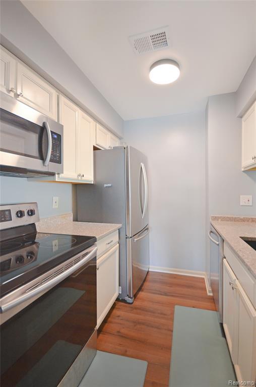 Beautifully Updated Lower-Level Condo in Prime Fraser Location! Step into this Private Entry move-in-ready condo offering over 1,100 sq. ft. of stylish, single-level living. The open and inviting floor plan features fresh neutral paint and brand-new custom flooring throughout the living, dining, and kitchen areas. The modern kitchen is a standout, showcasing crisp white cabinetry, granite countertops, and stainless steel appliances, perfect for both everyday living and entertaining. With two full bathrooms, this home provides comfort and privacy for both homeowners and guests. Enjoy the ease of private first-floor laundry, complete with a washer, dryer, utility tub, and additional storage space off the utility room. Two generously sized bedrooms include a spacious primary suite with ample closet space and a walk-in shower for added convenience. Step outside to your own private patio, ideal for morning coffee or evening relaxation. Located in the heart of Fraser, this well-maintained condo combines modern updates, a functional layout, and unbeatable proximity to shopping, dining, and expressways.