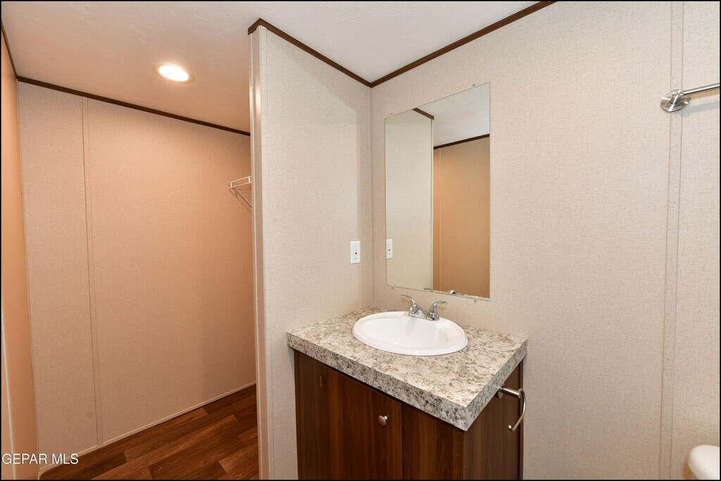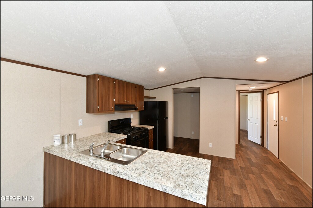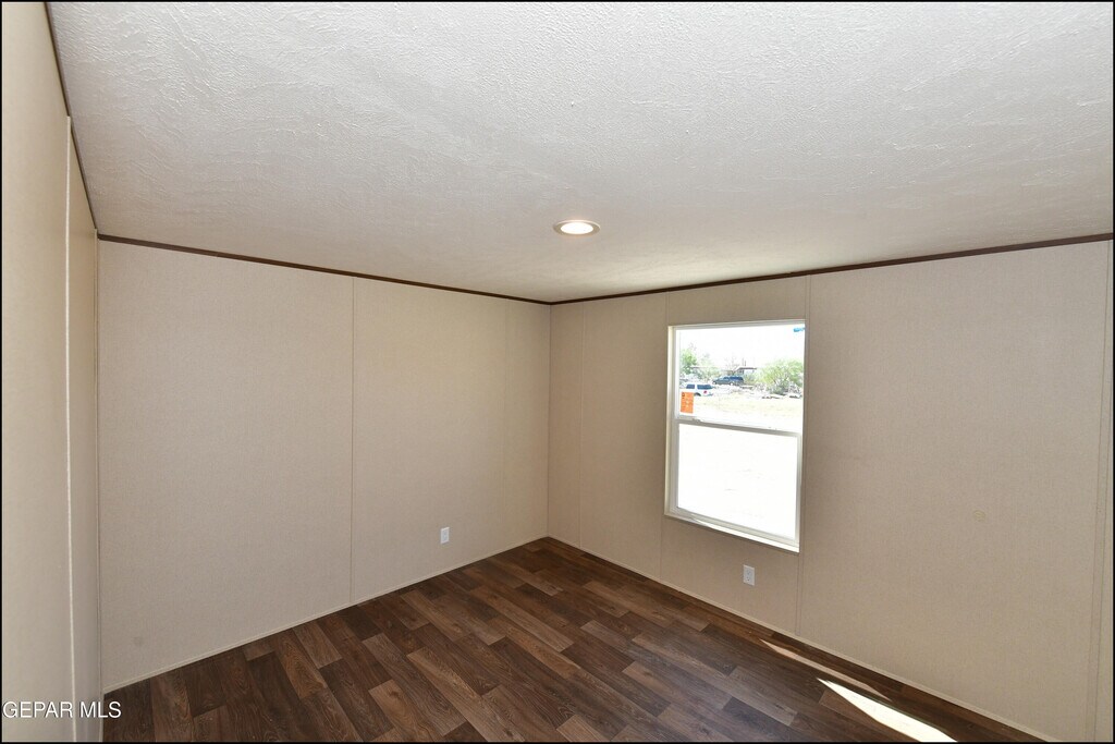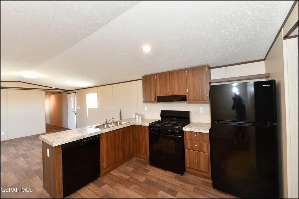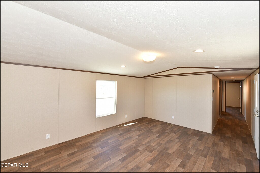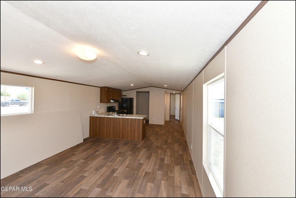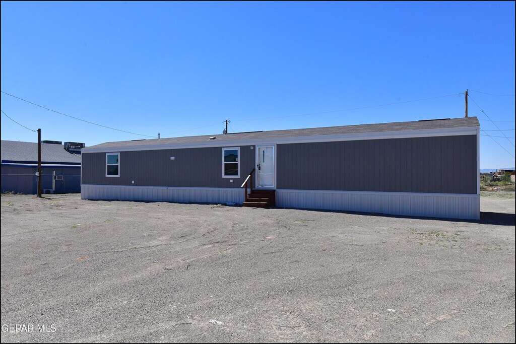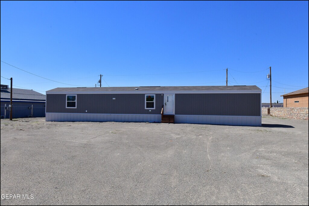 Newly constructed and situated in El Paso's fast-growing Eastside corridor near Horizon City,this 3-bedroom,2-bath mobile home offers modern living within reach of Loop 375,Mission Ridge Elementary,and shopping along Eastlake and Zaragoza. Inside,wood-style vinyl flooring flows through a bright,open layout enhanced by recessed lighting and neutral finishes. The kitchen features dark cabinetry,a black appliance suite,and a double stainless sink. Both bathrooms offer clean lines and durable surfaces. Outside,the fully fenced lot has been professionally cleaned and upgraded with new gravel screening for a tidy,low-maintenance exterior. The septic system was recently serviced and tenants will be required to maintain the yard and fencing condition,including certification of septic cleanliness upon vacancy. Deposit-Free Renting service to Obligo qualified renters,fees may apply.