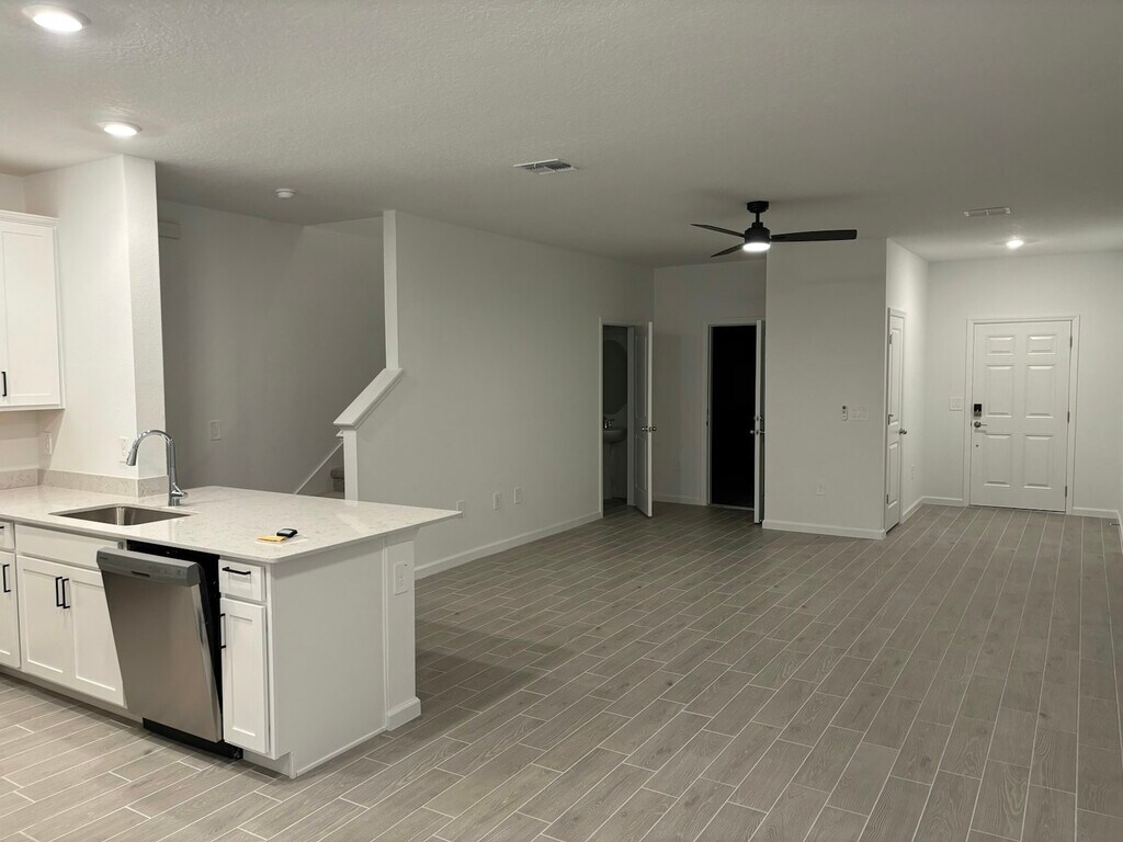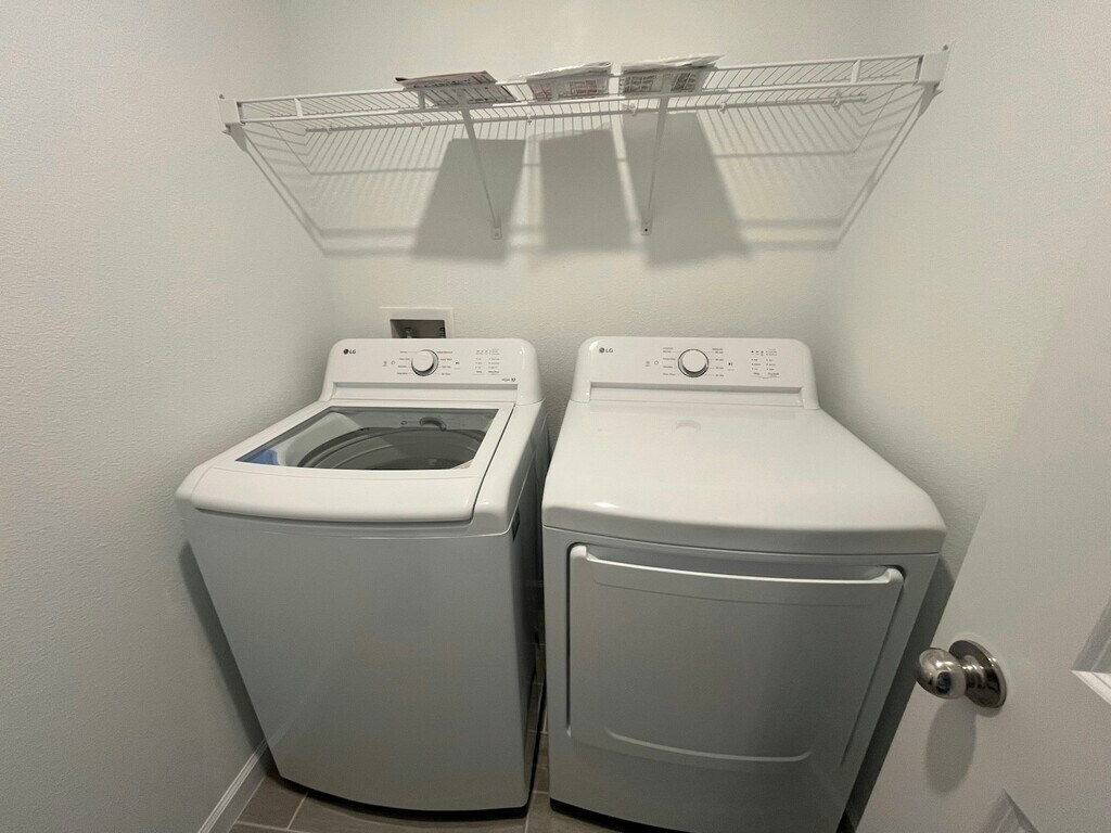 Move-in ready SE Ocala townhome featuring tile flooring downstairs, granite countertops, and shaker-style cabinets. The spacious primary suite offers a large walk-in closet, dual vanities, and a walk-in shower. Upstairs laundry includes washer and dryer for added convenience. Enjoy the screened lanai for fresh air and relaxation. Plus, a one-car garage completes this well-appointed home. Ready now!