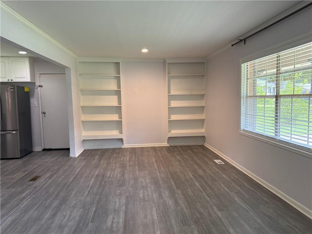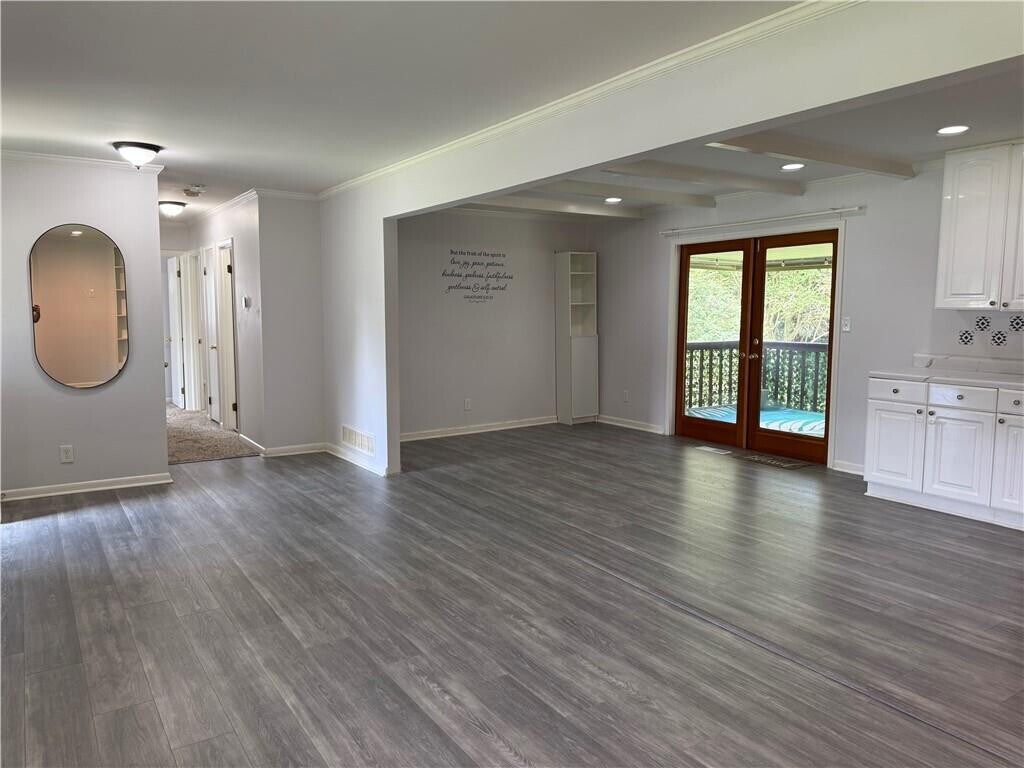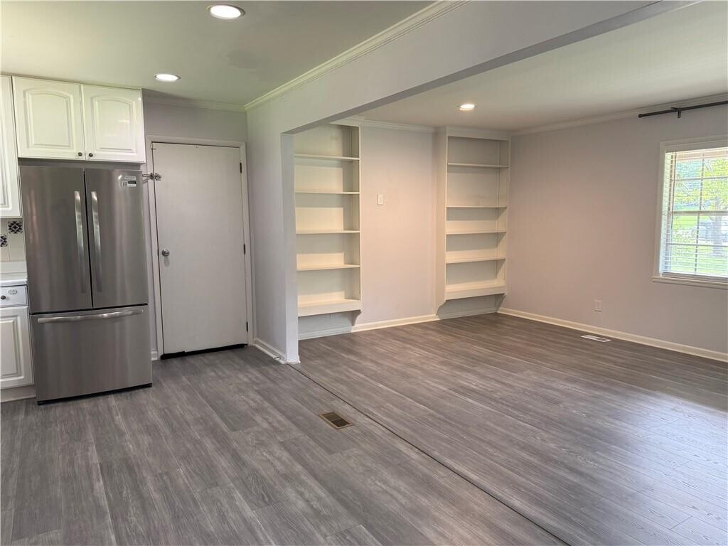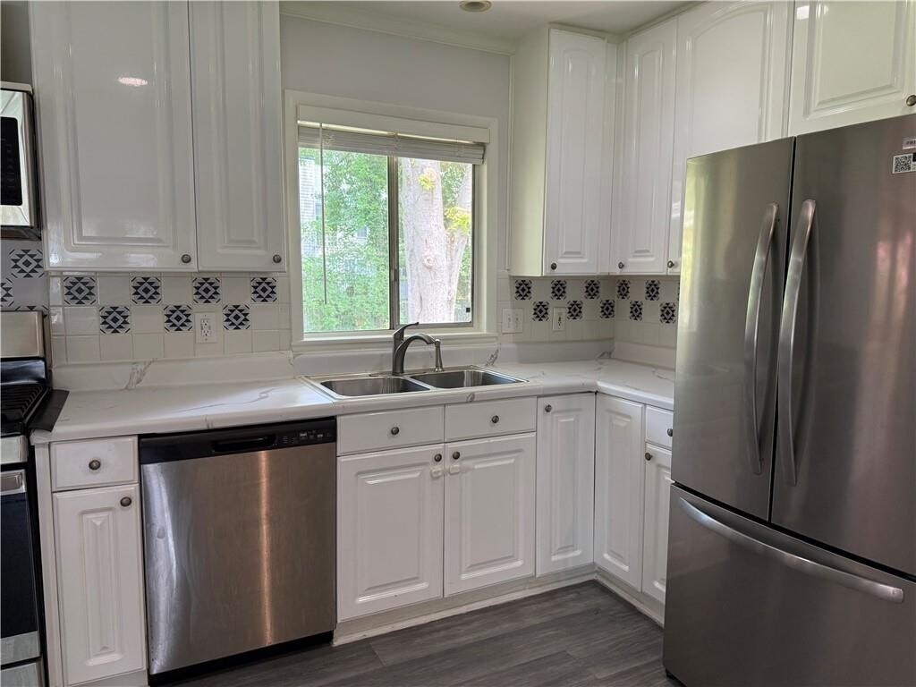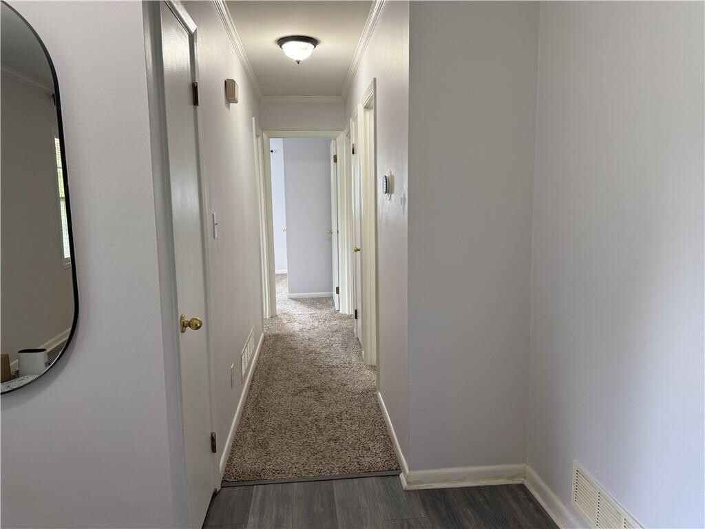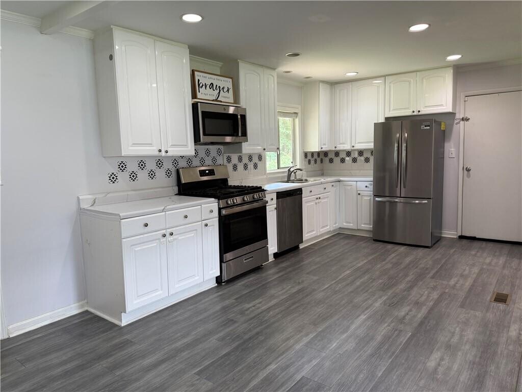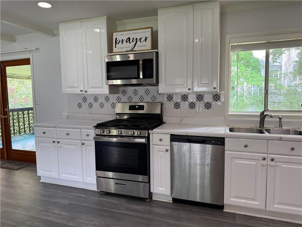 Unveil the charm of this meticulously renovated 3-bedroom,2-bathroom ranch home,tucked away in the heart of Smyrna,Georgia,within the highly desirable Creatwood Forest community,just moments from vibrant Atlanta Road. This 1968 brick-clad jewel fuses timeless allure with modern sophistication,poised for you to move right in! Picture a gleaming new roof crowning this home,with freshly painted walls inside and out that radiate warmth. The floors blend plush new carpeting with polished hardwoods,creating an inviting flow throughout. Step into the airy,sun-soaked living room,where smooth ceilings and elegant built-in shelving set the stage for cozy evenings or lively gatherings. The adjacent gourmet kitchen is a culinary haven,featuring a suite of stainless steel appliances—a sleek oven,gas range,dishwasher,microwave,and expansive refrigerator—paired with generous countertops. A spacious eat-in nook or nearby dining area makes hosting dinner parties or savoring daily meals a delight. Escape to the serene,fully fenced backyard,where a towering oak tree provides shade over a grand covered deck—perfect for unwinding,entertaining,or letting pets and kids roam freely in complete privacy. The primary bedroom offers a tranquil retreat with backyard vistas and a refreshed ensuite bathroom boasting a chic stand-up shower. A second,stylishly updated bathroom off the hallway features a modern shower/tub combo and sleek sink. The freshly painted one-car garage offers ample storage or convenient parking. Impeccably maintained and move-in ready,this pristine home brims with possibilities. Seize the chance to lease this exceptional property in one of Smyrna’s most coveted neighborhoods. Book your private tour today and discover your dream home!