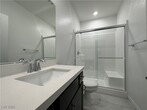 Experience contemporary living in this brand-new, single-story home. Never lived in and in pristine condition, this property features untouched fixtures, finishes, and appliances. The open floor plan with tile flooring throughout offers a spacious feel. With 4 bedrooms and 3 full baths, it's perfect for a large family, guests, or a home office. The upgraded kitchen includes stainless steel appliances, tall cabinetry, a large sink, and a generous island for entertaining. The newly landscaped backyard, with pavers and artificial grass, is beautiful and low maintenance. This home showcases Lennar's popular Next Gen model, providing a private living space within the main house, complete with a separate entrance, kitchen, fridge, and sink. Located in the vibrant Inspirada Master Plan Community, enjoy numerous amenities and easy access to Southern California, the airport, and the Las Vegas Strip.