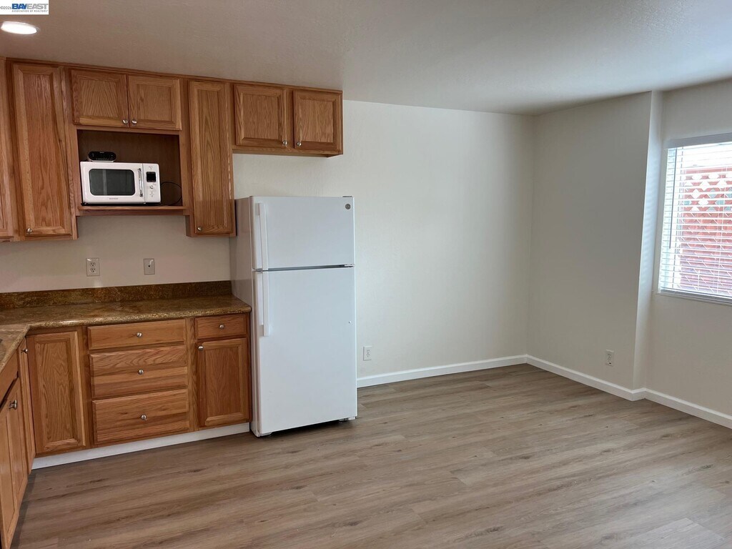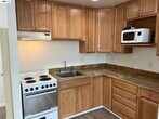 Updated One Bedroom Apartment in Pleasanton's Vintage Hills! Sunny,first floor unit,kitchen/living area with plank floors,ample kitchen cabinets,granite counters,dining area with lighted ceiling fan,double door access to bedroom suite featuring,bathroom with granite counter,large walk-in closer,slider access to private patio. One covered parking space. Water & Garbage included in the rent. On-site laundry. Walking distance to shopping,dining,services and community parks.