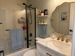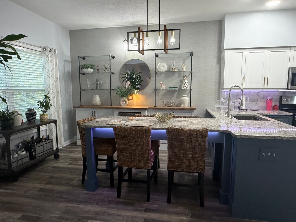Offered UNFURNISHED, this beautiful home is in the perfect mid-island location and includes many custom features. Enjoy sitting on the covered front porch with your coffee in the mornings. Being nestled in the cul-de-sac provides peace and quiet. Upon entering the home, you will see how well maintained it is. Freshly painted, new flooring, a custom kitchen countertop extension which serves as a dining room table, custom built-ins with open shelving and storage, updated appliances, and coastal chic light fixtures. The primary bedroom is on the first floor and includes a newly updated primary bathroom and walk-in closet. Upstairs you will find two guest bedrooms and a remodeled guest bathroom with a tub/shower. A laundry closet with a full size washer and dryer is upstairs as well. The guest bedroom being used as an office has a custom furniture piece which is a pull-out bed (photo coming). This piece of furniture can remain and be yours for $200. It is brand new! This home includes a very spacious garage. There is a custom built-in bar and shelving for storage. There's enough room to park 2-3 vehicles or park in the driveway in front of each garage door. Bike to shopping, dining, the beach and more! This mid-island location is ideal to get to the south-end, north-end or off island. Enjoy use of the community pool as well. Tenant is responsible for all utilities. Seeking a 12-mo lease. No cats permitted. A dog is considered with owner approval and a pet deposit due at lease signing. Security deposit due at lease signing.