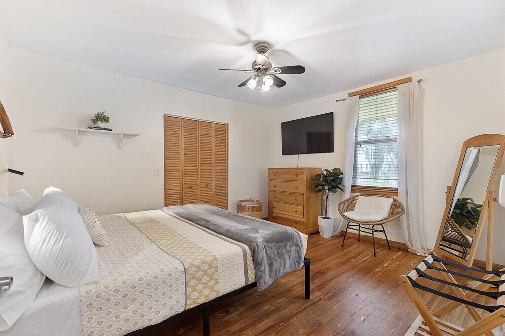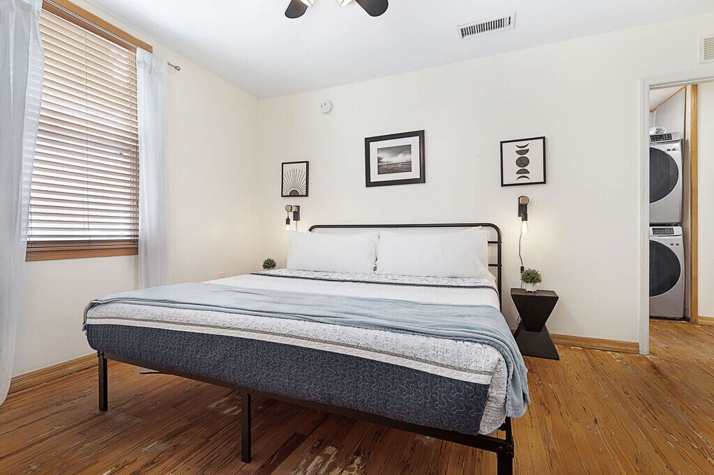 The advertised rate of $4,688/month is the lowest available price, based on a 30 day(s) stay with a move-in date of July 31, 2026. Rates vary depending on the duration of stay, season, and other parameters. For exact pricing and additional pricing components, please visit our website and enter your desired move-in and move-out dates. The rate is applicable when billed upfront; it can be higher if billed in multiple payments. Feel at home in this charming home located in the historic Lincolnville neighborhood, just minutes away from downtown St. Augustine. This home offers a perfect getaway. This downtown gem offers a mix of historic charm and chic style. The dining room features a table with seating for six and a cabinet filled with games. The living room includes a cozy sitting area with a couch, an accent chair, a futon for additional seating, a large smart TV, and an in-home bar with a local barrel table from the St. Augustine Distillery. The fully equipped kitchen has pots, pans, plates, bowls, glasses, silverware for six, and coffee maker options including a Keurig, drip coffee maker, and espresso machine. Bedroom 1 features a spacious king-size bed, a smart TV, a work desk, and clothing storage. Bedroom 2 offers a spacious king-size bed, a smart TV, clothing storage, and an attached en-suite bathroom with a walk-in shower. Bathroom 2 has a shower/tub combo and a spacious vanity. Outdoors, there's a separate game room/shed with a ping pong table, badminton net and gear, a BBQ grill, and a shaded sitting area with a dining table. Off-street parking is available for two vehicles. One dog under 50 lbs is welcome with a nonrefundable pet fee of $150. Lincolnville is home to the largest concentration of late Victorian era buildings in the city and is listed on the National Register of Historic Places. Experience flavorful dining, art, and culture with an abundance of entertainment right on your doorstep. This home is right around the corner from local favorite, Dog Rose Brewery, and just a couple blocks away from Blue Hen, the top neighborhood brunch spot. From the Castillo de San Marcos National Monument to the Ripley’s Believe It or Not Museum, there is something for everyone just a short stroll from the house. Guests can walk to the many shops, top restaurants, art galleries and attractions making it easy to get around on foot. Quiet hours are between 9 PM and 8 AM. The primary guest on the reservation must be present for the duration of the stay. If you have more guests on the premises than you have notated in your reservation, an additional fee may be charged. This home is not suitable for bachelor/bachelorette parties, wedding parties, receptions, or any other large group gathering. Any guests visiting outside of the reservation must be approved prior to their arrival. There is an actively recording security camera installed at the front door of the home, and any attempt to remove, tamper, or disconnect the internet to the camera may result in the reservation being canceled and guests requested to vacate the premises. No vaping or smoking is allowed on the property, and evidence of smoking will result in an additional cleaning fee. Illegal drugs, underage drinking, and foreign objects down the toilet are strictly prohibited. Guests are 100% liable for any property damage caused by themselves or guests during their stay. Guests who stay past checkout time will be charged an additional fee of $50 per hour. Additional charges will apply if dog feces is not picked up and properly disposed of ($50 per pile). Bedroom 1 includes a work desk. [SI]