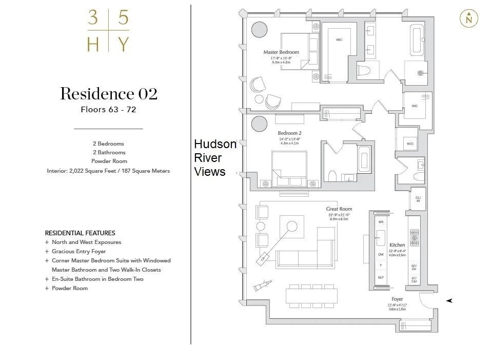 35 Hudson Yards is the tallest residential tower in the neighborhood, rising 92 stories above Manhattans West Side with sweeping views of the Hudson River and city skyline. Designed by David Childs / Skidmore, Owings & MerrillLLP, this Bavarian limestone and glass tower offers 143 grand-scale residences starting on the 53rd floor, with interiors byAD100designer Tony Ingrao. Two- to six-bedroom homes feature ceiling heights up to 14 feet, generous layouts, and custom finishes throughout.Residents enjoy over 22,000 square feet of private amenities across multiple floors, including a fitness center, meditation room, golf simulator, lounge, business center and boardroom, private dining spaces, childrens playroom, and screening room. The 24th floor features a Grand Dining Room and terrace overlooking the Hudson River, with direct access to Electric Lemon, one of the three on-premises restaurants that offer incredible cuisine and in-residence dining. Additional benefits include a dedicated concierge, resident storage, and bicycle room. The building is seamlessly connected to the flagship Equinox Hotel and Equinox Club & Spa, spanning 60,000 square feet including indoor/outdoor pools and priority access to SoulCycle.At the heart of Hudson Yards and overlooking the Vessel, 35 Hudson Yards is surrounded by parks, luxury shopping, and world-class dining including ZZs and Carbone Privato. With a focus on sustainability, wellness, and technology, it offers an elevated lifestyle defined by privacy, discretion, and unmatched sophistication.Exclusive Marketing and Sales Agents: Related Sales L.L.C. & Corcoran Sunshine Marketing Group.The complete offering terms are in an offering plan available from Sponsor,ERYNorth Residential Tower L.L.C. c/o The Related Companies, L.P., 30 Hudson Yards, New York, NY 10001.CD16-0313. Hudson Yards images are artists renderings.ERYNorth Residential Tower, L.L.C. and Exclusive Sales and Marketing Agent fully support the principles of the Fair Housing Act and the Equal Opportunity Act.