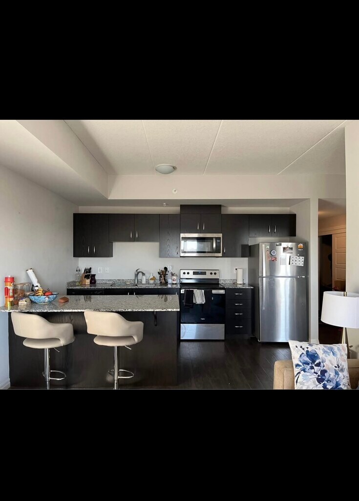 - Monthly Rental in South End Guelph~~Rental available on monthly basis or till April 30th 2026. 2 bed 2 bath semi furnished condo unit available in south end of Guelph. - Private unit - in unit laundry, dishwasher, stainless steel appliances - central heating and cooling - 2 mins walk from bus stop - couch, 1 king bed and mattress, bar stools and 1 dresser included DM for questions/viewing
