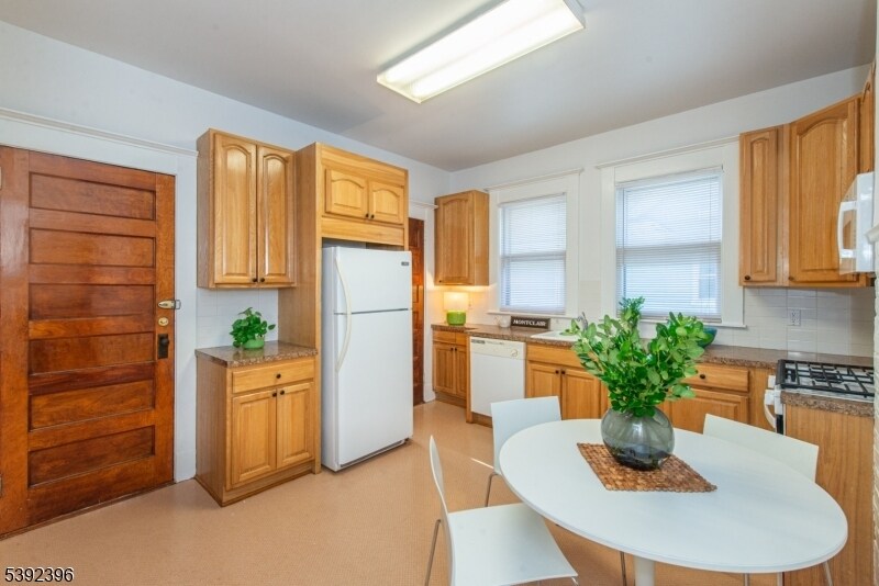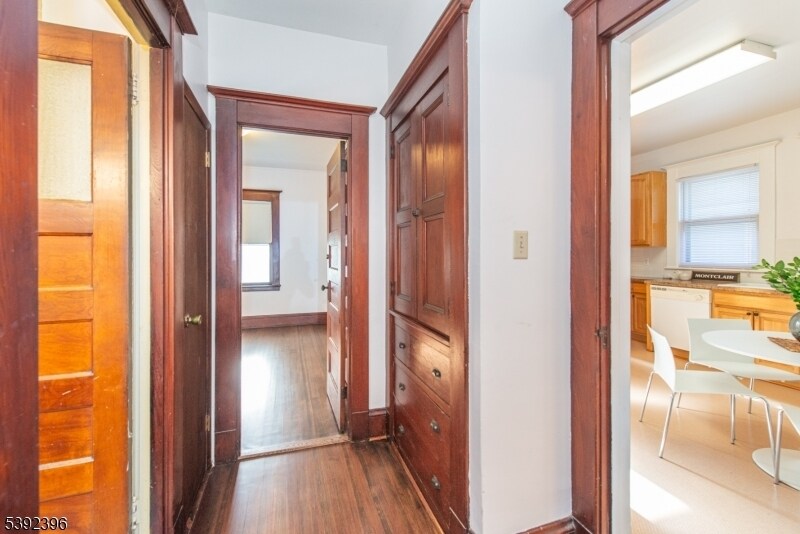 Gorgeous, sun-drenched, 2nd flr 2-bed apt in multi-family on top tree-lined street. Located just steps from NYC Direct train, Walnut Street cafe's and bakeries, Egans, fitness studios, and the fabulous weekly farmers market with artisan breads, cheeses and fresh produce. Freshly painted throughout with stunning architectural details: 9'-3" ceilings, newly refinished oak floors, lead glass detail, original gleaming chestnut moldings, trim, built-in linen closet and gorgeous pocket doors allowing a flexible floor plan. Enjoy morning coffees on your own exclusive covered, screened porch -- freshly painted with new floor and electric outlet to add string lighting or reading lamp. Porch is also an excellent vantage point to take in the Montclair Avenue Halloween festivities - the Halloween epicenter of Montclair! Oversized windows are everywhere in this bright home. A generous living room and separate spacious dining room lead to an eat-in kitchen with wonderful maple cabinetry, brand new stove and new microwave, and a large walk-in pantry. The floor plan feels like a home with separate side hall with original built-in linen closet leading to two beautiful bedrooms and a freshly painted, vintage (adorable) bathroom. Dedicated washer and dryer and some storage in basement. Off street tandem parking for up to two cars. A wonderful home on a wonderful street awaits!