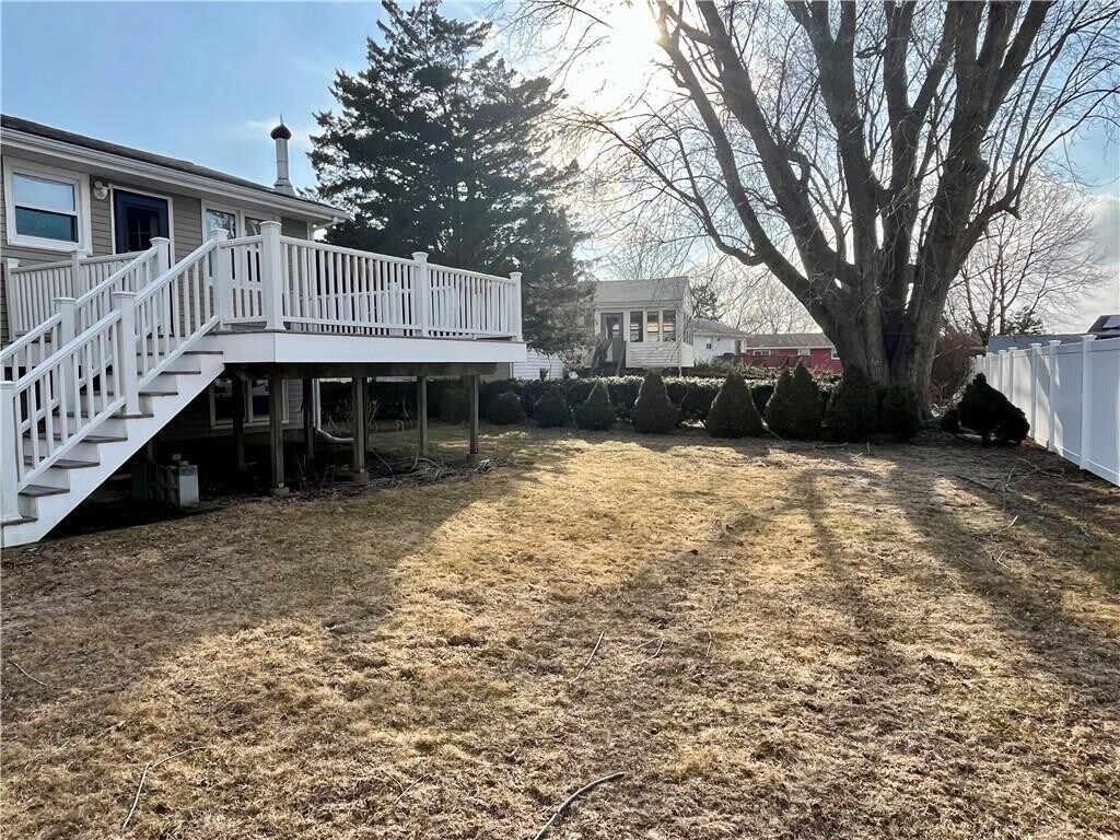 This inviting raised ranch offers over 1800 square feet of living space. Featuring three spacious bedrooms,the home includes a full bathroom conveniently located in the main hall,plus a half bath off the primary bedroom. Enjoy beautiful hardwood floors throughout,adding warmth and charm to every room. The home's young heating system ensures energy efficiency,while the lower level offers an extra living room,office space,and a mudroom,all enhanced by the cozy addition of a wood-burning stove. Outside,a paved stone driveway leads to a large garage with plenty of room for parking and storage. The partially fenced yard and patio area create a private and inviting space,perfect for hosting family and friends. Centrally located,this home provides easy access to the Newport Naval Station,local beaches,and fantastic restaurants. MLS ID 1405036
