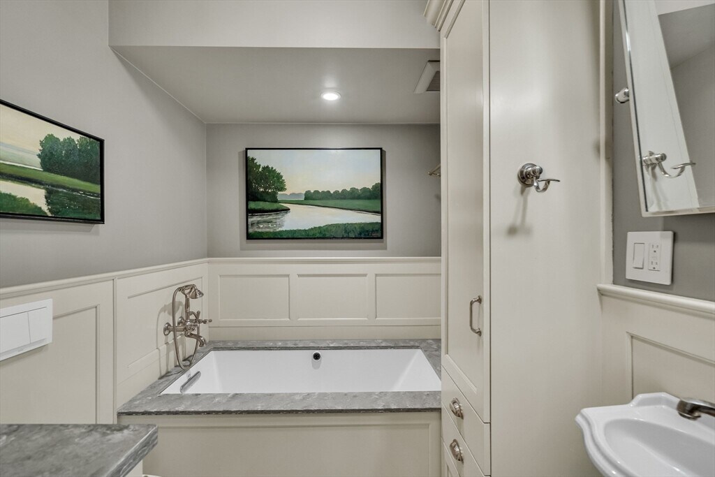 Fully furnished,utilities included! Welcome to this classically designed home,perfect for a sabbatical or a full/partial academic year in Cambridge! Tucked away in a leafy residential area,this charming unit boasts 3 bedrooms,2 full baths,separate formal living and dining rooms,a private library w/wet bar and gas fireplace,plus a sunny office area or extended living space. Two bedrooms with queen beds and third bedroom to be furnished for tenant's needs. Gourmet kitchen with convection cooking,includes an additional sink/prep island,small appliances,and cook and dishware for your convenience. Enjoy central heat/AC,in-unit W/D,concealed surround sound,heated bath floor on main level and whole house water filtration. Neighborhood gourmet and traditional food shopping,cafes,boutiques and entertainment. Access to bike path,T buses and trains for exploring Cambridge and beyond! Flexible start/end dates. No smoking or pets. Please have excellent credit and references. MLS# 73450372