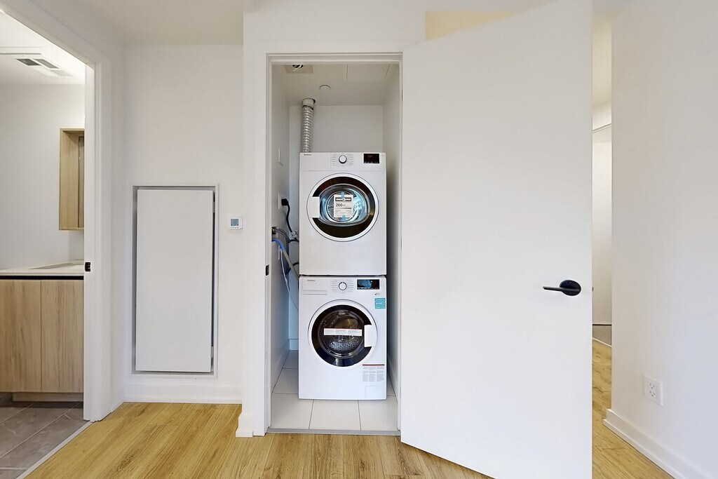 Brand new two bedroom, north-west corner suite with two full washrooms plus one storage locker! Stunning finishes throughout. Amazing city views. Open concept kitchen with integrated appliances and quartz countertops. Walkout balcony from the living room. Primary bedroom features two picture windows and closet. Extensive amenities on the 2nd and 10th floor: concierge, fully-automated parcel system, gym, rooftop gardens and fire pit, barbeque area, outdoor pool, lounge, gaming area, work stations, yoga studio, party room. Note: new build, amenities are artist renderings and not open until building is finished. Conveniently located in the Distillery District with easy access to TTC/Streetcar and the financial district. Steps to restaurants, cafes, shops and more. Easy access to Gardiner Expressway and Don Valley Parkway(DVP). Walk score 96, transit 93, bike 98!