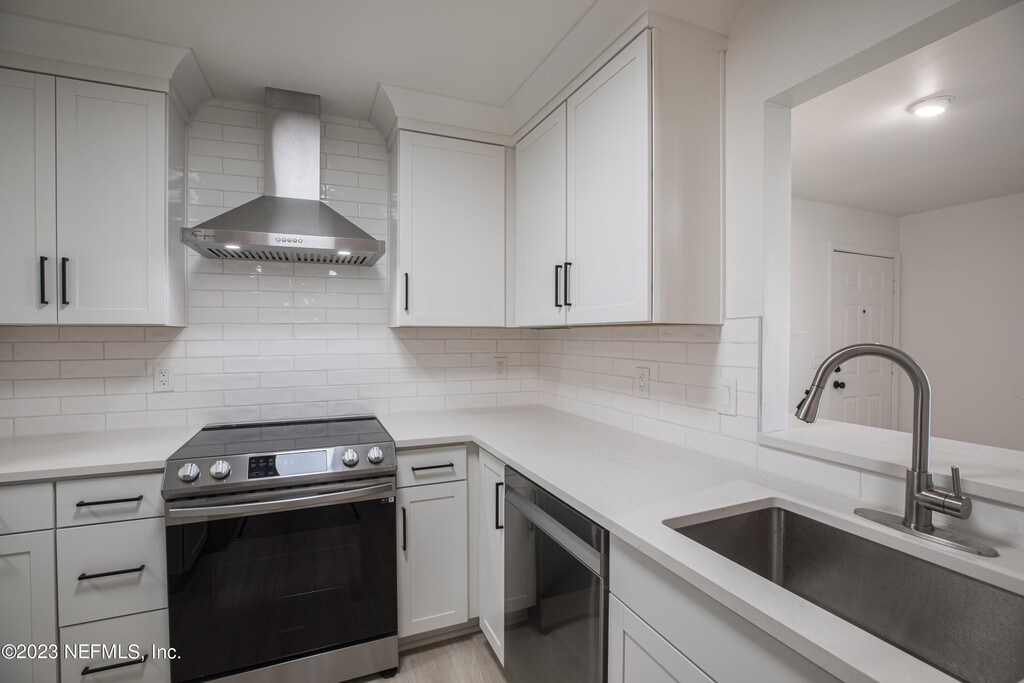 Experience luxury living in a fully remodeled,bright condo with a touch of Scandinavian style. This prime location in Ponte Vedra Beach is just a 10-minute walk from the beach,Lodge and Club,Rawlings Elementary School,Goddard preschool,and 20 min from Publix. This stunning condo features LVP floors,two bedrooms with walk-in closets,new vents,and a french balcony. The master bedroom has an attached bathroom with black and white tiles and a glass wall shower,while the guest room has a separate bathroom across the hall. The condo also features a kitchen with granite countertops and newer appliances and an adjacent pantry/laundry room with Samsung washer and dryer. In addition,the property comes with a garage and is pet-friendly for service animals. MLS# 2124593