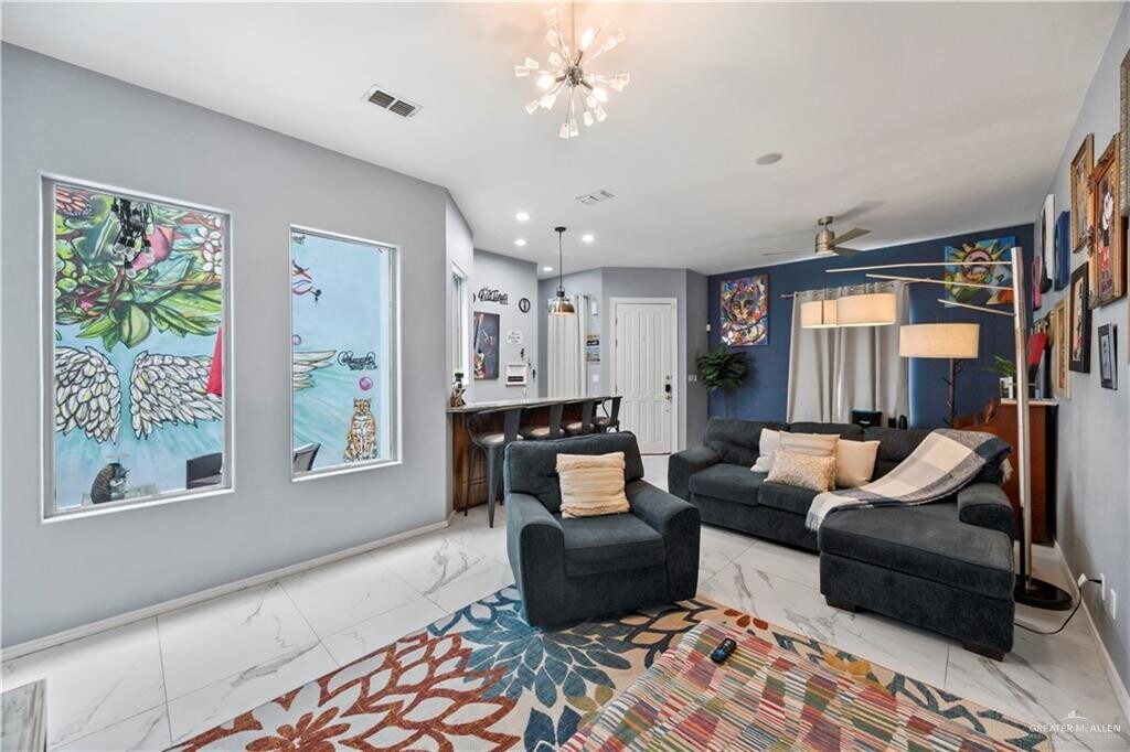 This MODERN living townhome was built in 2003,Located in the prestigious South McAllen area. This 3 bedroom,3.5 bathroom features a contemporary finish throughout with a timeless modern touch! Almost 3000 sqft.,Tile and hardwood floors throughout,full size 2 car garage. Neighborhood offers walkability to Quinta Mazatlan. Come see this beauty,it is sure to delight. Completely Furnished