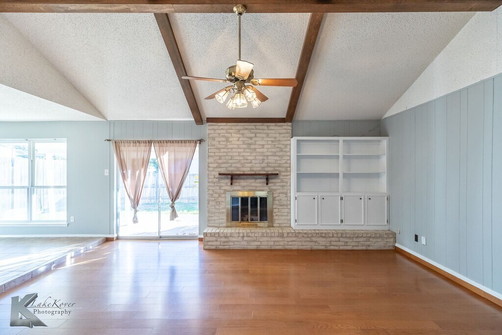NEW INTERIOR PAINT THROUGHOUT! NEW carpet in bedrooms! Charming 3 bed, 2 bath, 2 car garage home in the middle of Abilene but on a secluded street! Step down living room complete with wet bar and fireplace. Great kitchen space with all kitchen appliances provided, even a washer and dryer! Bedrooms are carpeted; neutral colored walls throughout; both bathrooms have been updated with tile tub surrounds and updated fixtures. Central heating and air unit less than 5 years old. Small back yard with small storage building perfect for your yard equipment! Tenant to pay all utility bills; Rent always due on the 1st. All payments must be paid digitally. Easy! No sight unseen leases, you must tour this home IN PERSON before your application is considered.